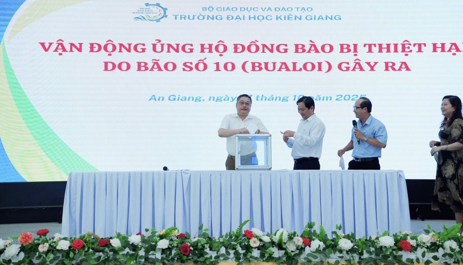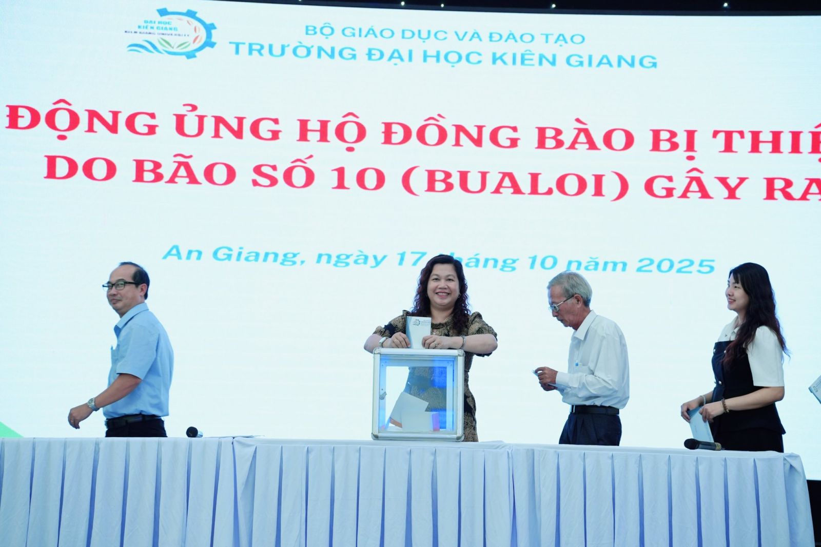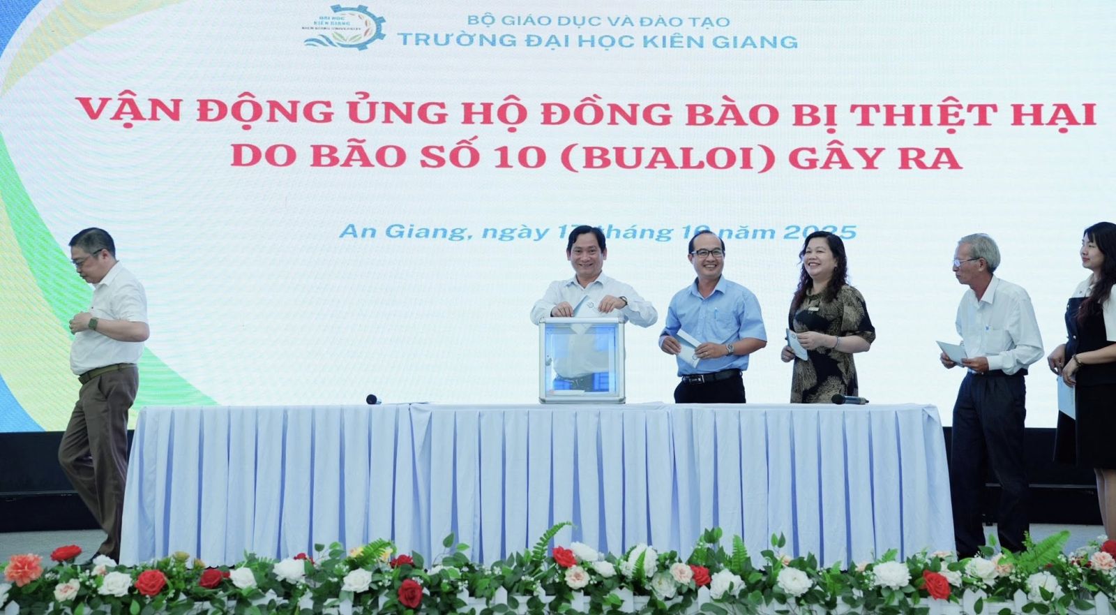 Sau Hội nghị, Trường Đại học Kiên Giang phát động đợt quyên góp, ủng hộ đồng bào bị thiệt hại do bão số 10 (Bualoi) gây ra, thể hiện tinh thần “tương thân tương ái, lá lành đùm lá rách” của tập thể viên chức, người lao động Nhà trường.