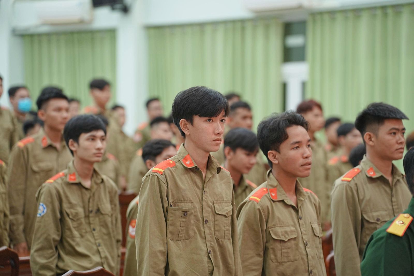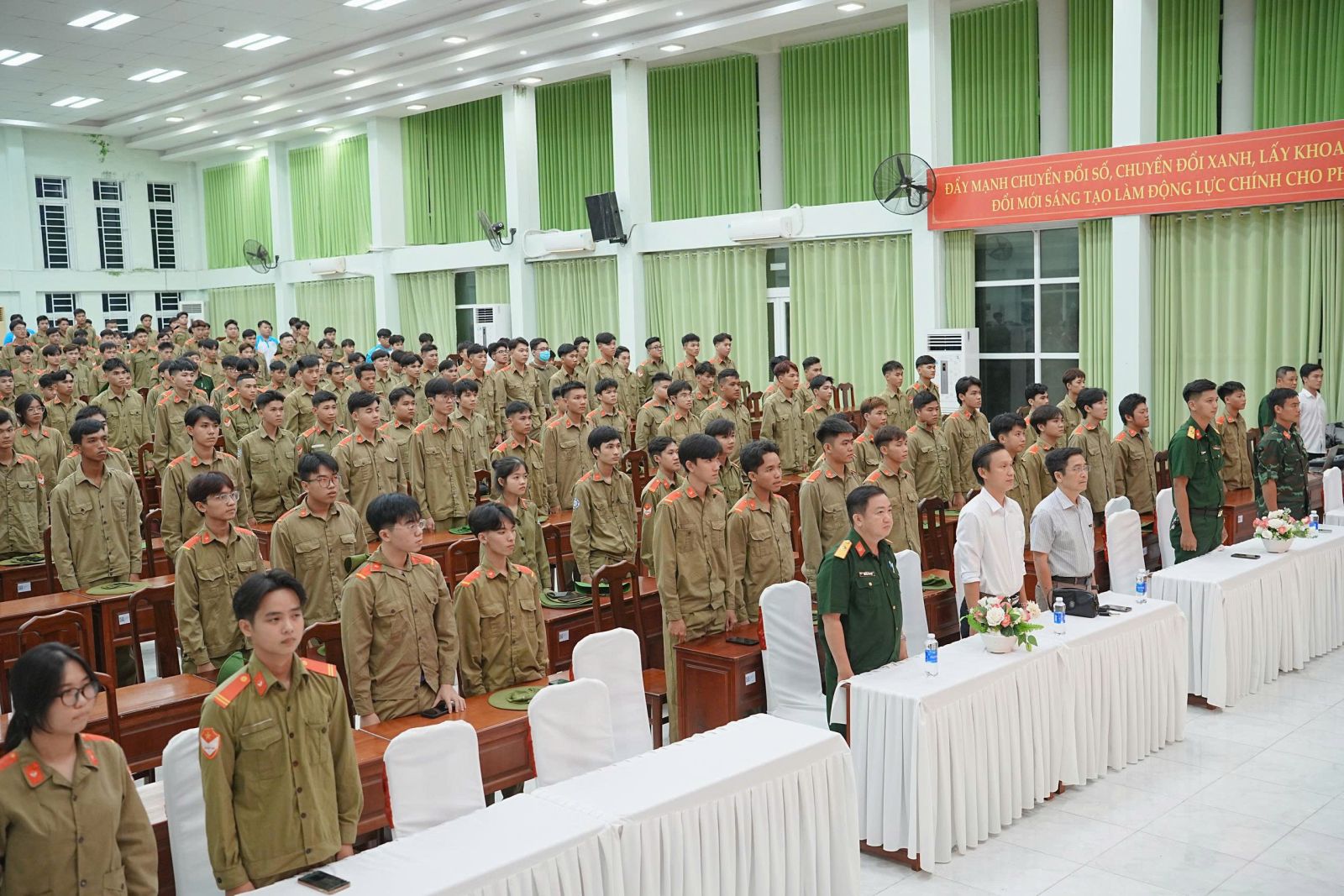 Tham dự tại buổi lễ có PGS.TS Nguyễn Trung Cang – Phó Hiệu trưởng Trường; ThS. Huỳnh Hải Âu – Trưởng bộ môn Giáo dục thể chất, Quốc phòng cùng toàn thể giảng viên, cán bộ quản lý sinh viên học tập trung.