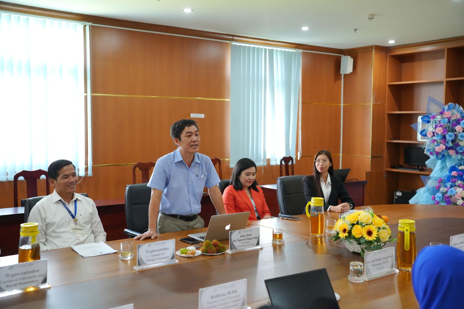 Bà Ardiana – Giảng viên, Thư ký bộ phận Hợp tác Khoa Sư phạm phát biểu tại buổi làm việc