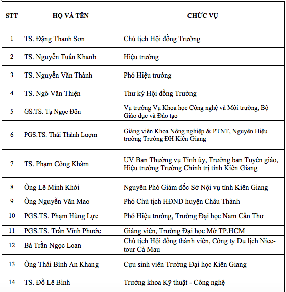 HỘI ĐỒNG TRƯỜNG ĐẠI HỌC KIÊN GIANG NHIỆM KỲ 2019-2024