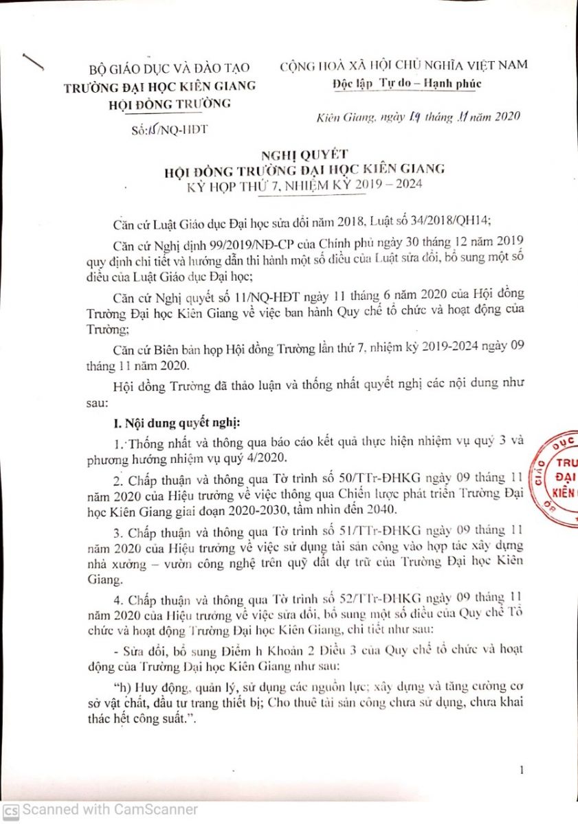 Nghị quyết Hội đồng Trường Kỳ họp thứ 7