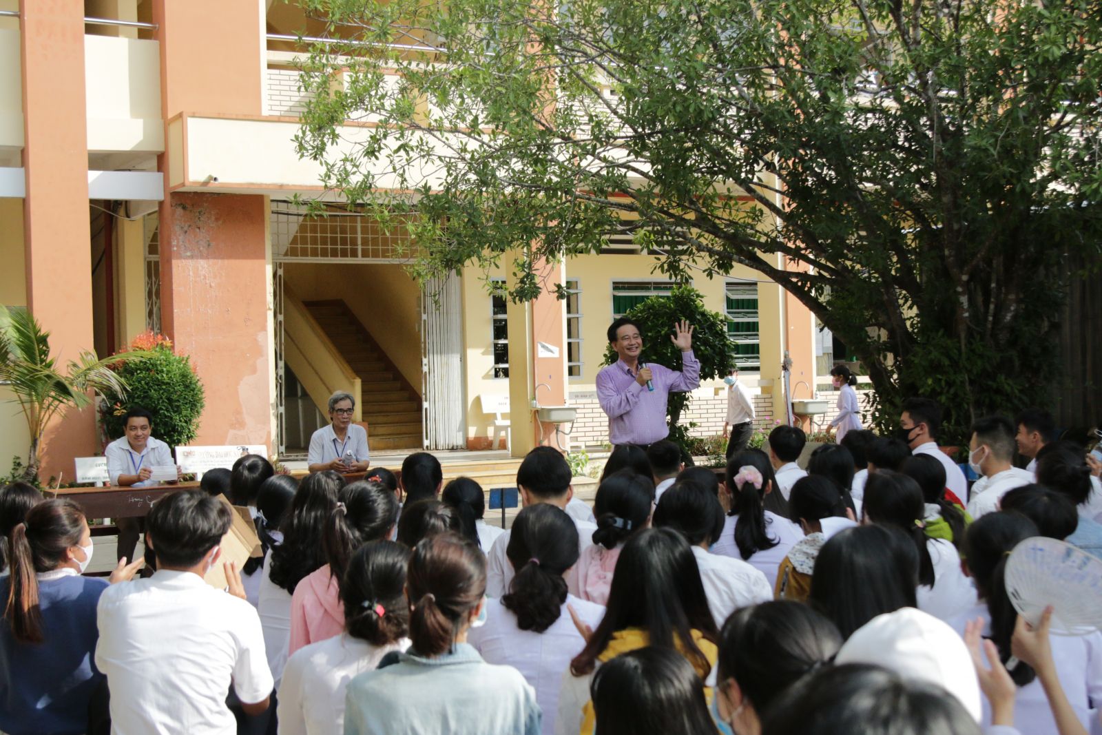 TS. Nguyễn Tuấn Khanh – Hiệu trưởng Trường Đại học Kiên Giang sinh hoạt cùng các em học sinh lớp 12, Trường THPT Giồng Riềng