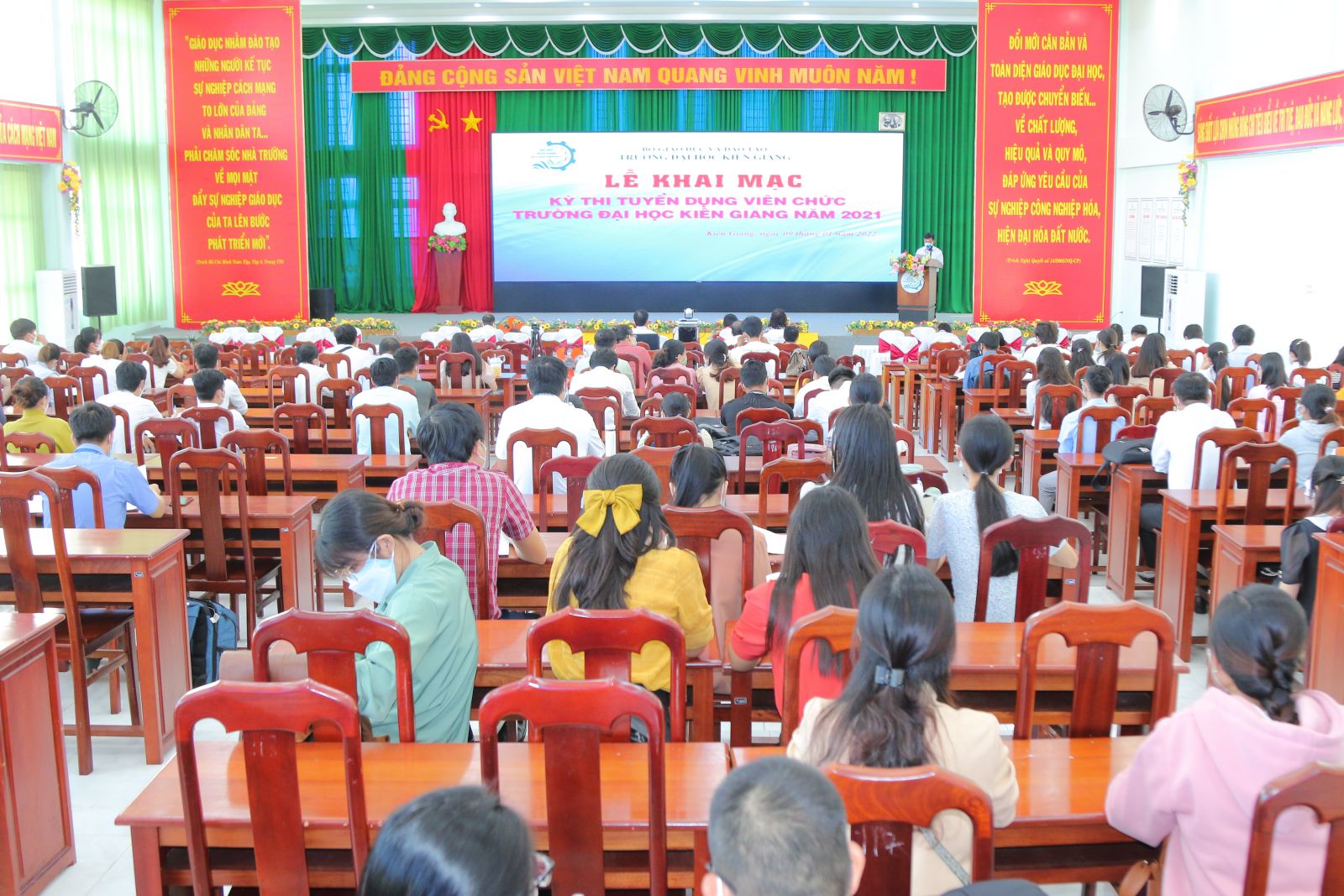 Trường Đại học Kiên Giang vừa tổ chức lễ khai mạc kỳ thi tuyển viên chức năm 2021. Tham dự lễ khai mạc có thành viên Hội đồng thi tuyển, Ban Giám sát, Ban giúp việc và 103 thí sinh tham dự kỳ thi.