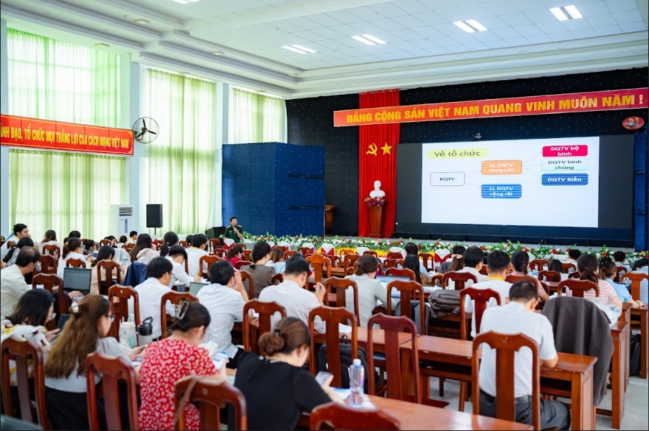 Sáng ngày 25/6/2025, tại Hội trường Nhà học B, Trường Đại học Kiên Giang phối hợp với Bộ Chỉ huy Quân sự tỉnh Kiên Giang tổ chức Lớp bồi dưỡng kiến thức quốc phòng và an ninh dành cho đối tượng 4. Đây là hoạt động thiết thực nhằm nâng cao nhận thức chính trị, củng cố bản lĩnh và tăng cường kiến thức QPAN cho đội ngũ viên chức của Trường trong tình hình mới.
