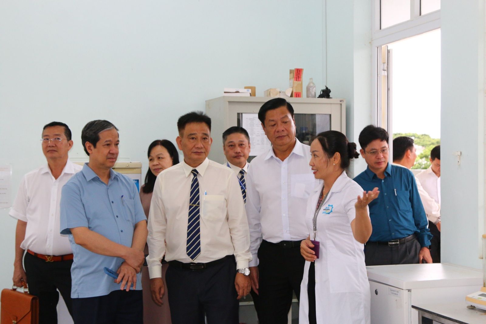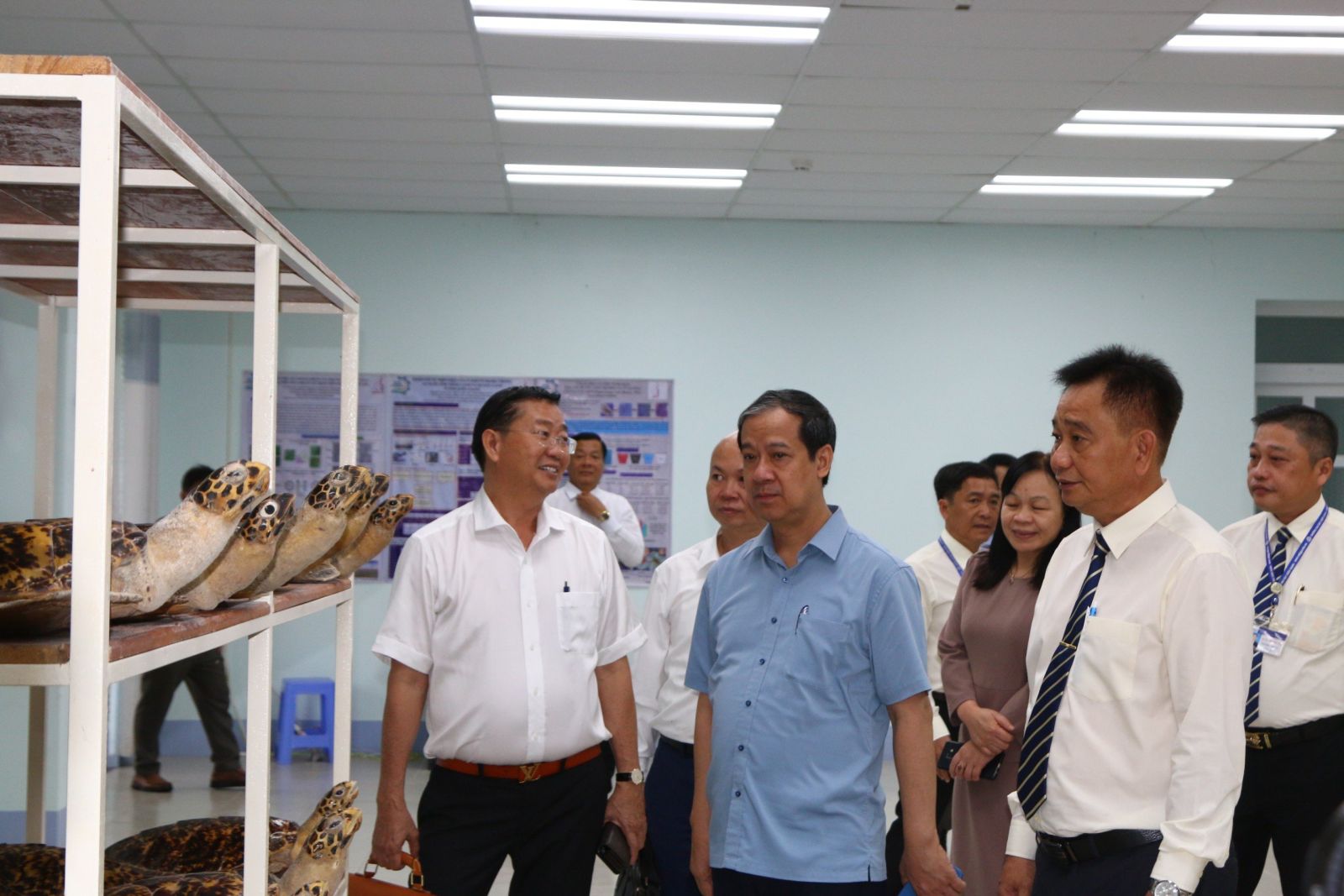 Bộ trưởng Nguyễn Kim Sơn tham quan phòng thực hành thí nghiệm tại Trường Đại học Kiên Giang