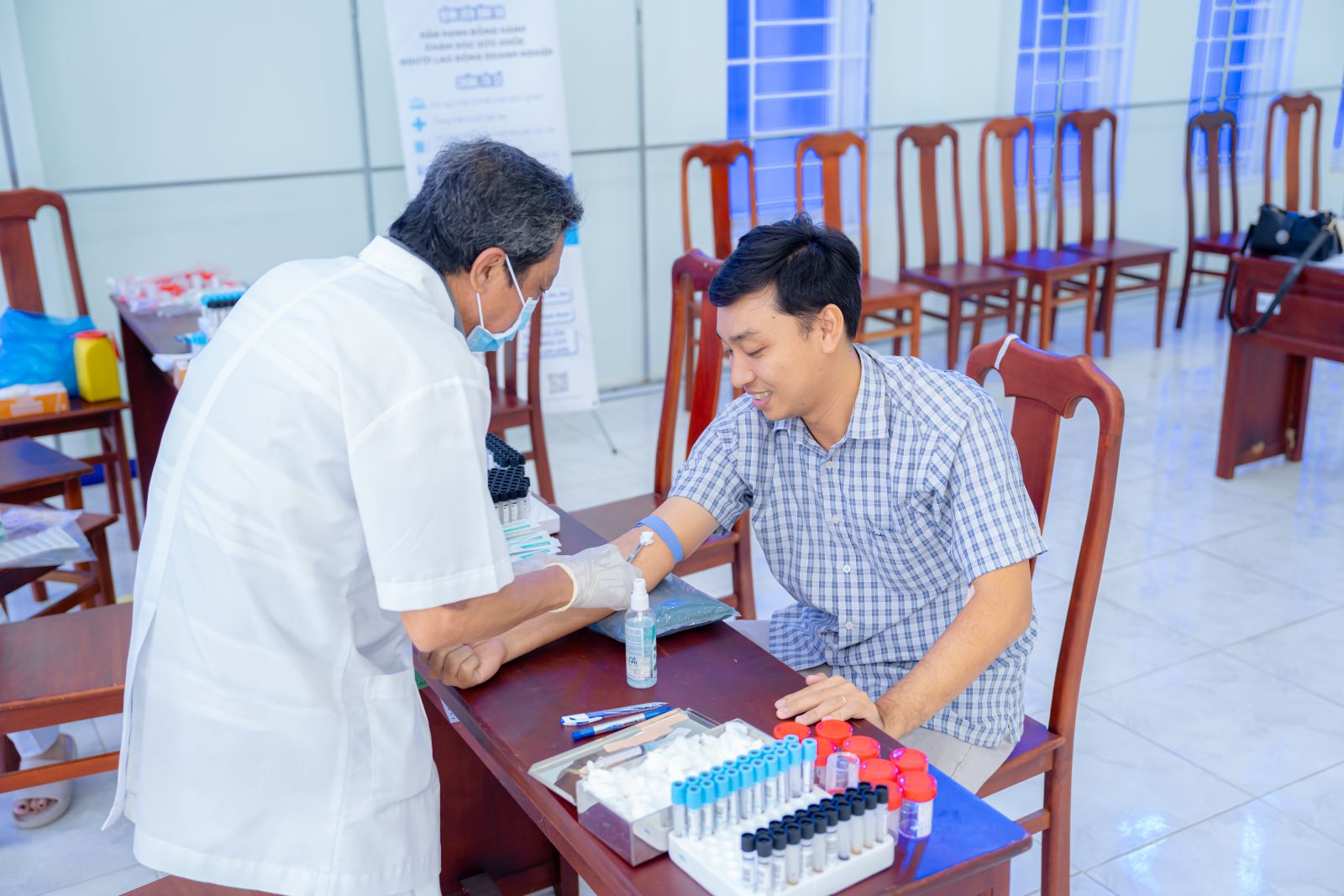 Hoạt động được chia làm hai giai đoạn: lấy mẫu máu tại hội trường Nhà học C trong hai ngày 10-11/12/2024 và khám tổng quát các chỉ tiêu còn lại tại Bệnh viện Bình An.