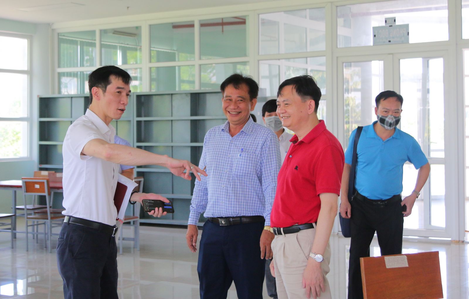 Phó Cục trưởng Cục Cơ sở vật chất Phạm Văn Sinh cùng đoàn làm việc tiến hành khảo sát Thư viện Trường Đại học Kiên Giang