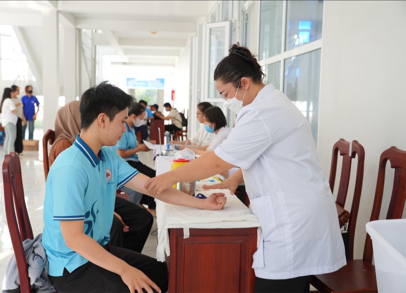 Đợt hiến máu đã thu hút đông đảo cán bộ, giảng viên, đoàn viên – thanh niên tham gia. Tất cả người hiến máu đều được khám sàng lọc, tư vấn sức khỏe và xét nghiệm miễn phí, bảo đảm an toàn trong suốt quá trình hiến máu.