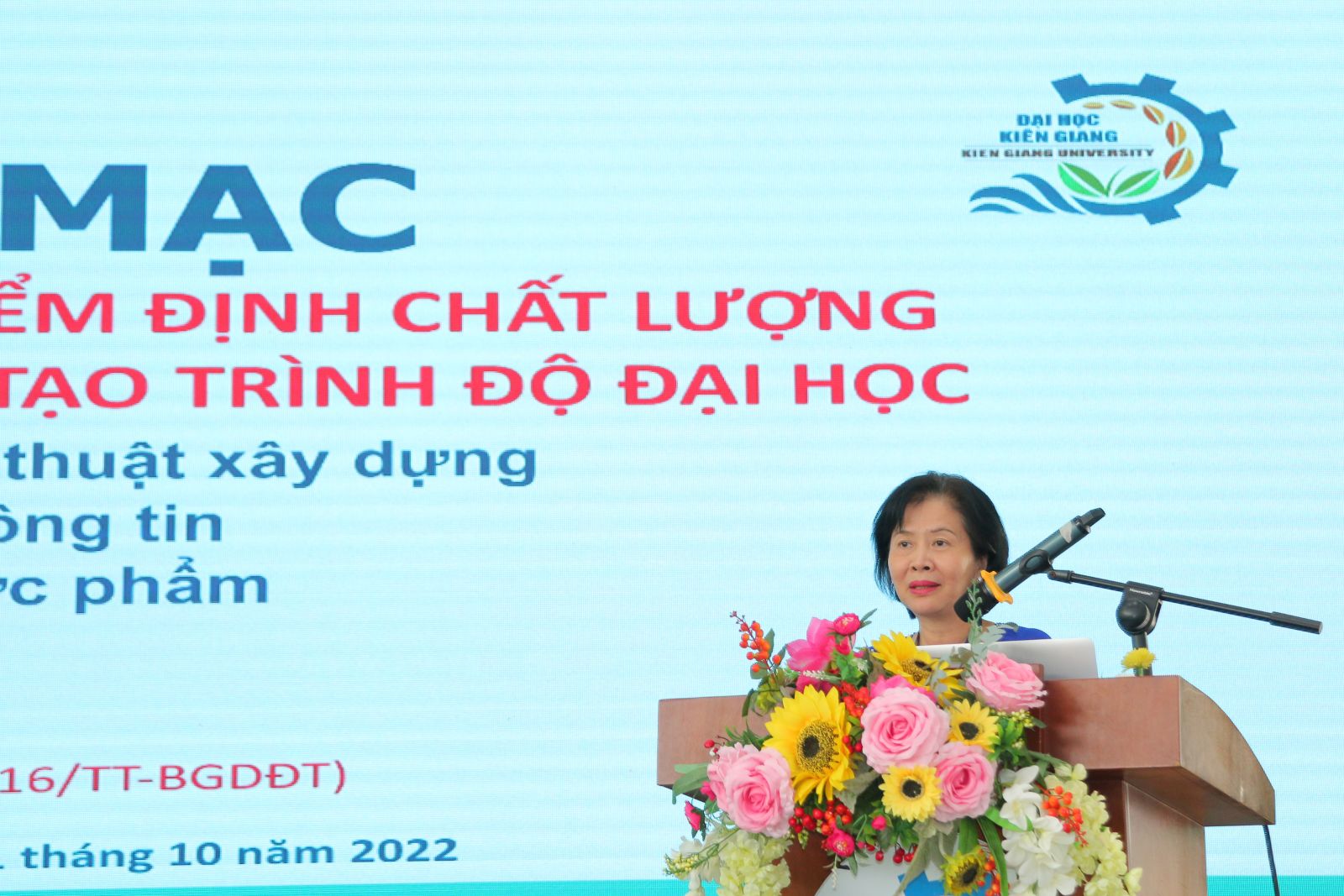 TS. Nguyễn Kim Dung –Giám đốc Trung tâm Kiểm định chất lượng Giáo dục Sài Gòn phát biểu khai mạc Đánh giá ngoài 5 chương trình đào tạo tại Trường Đại học Kiên Giang