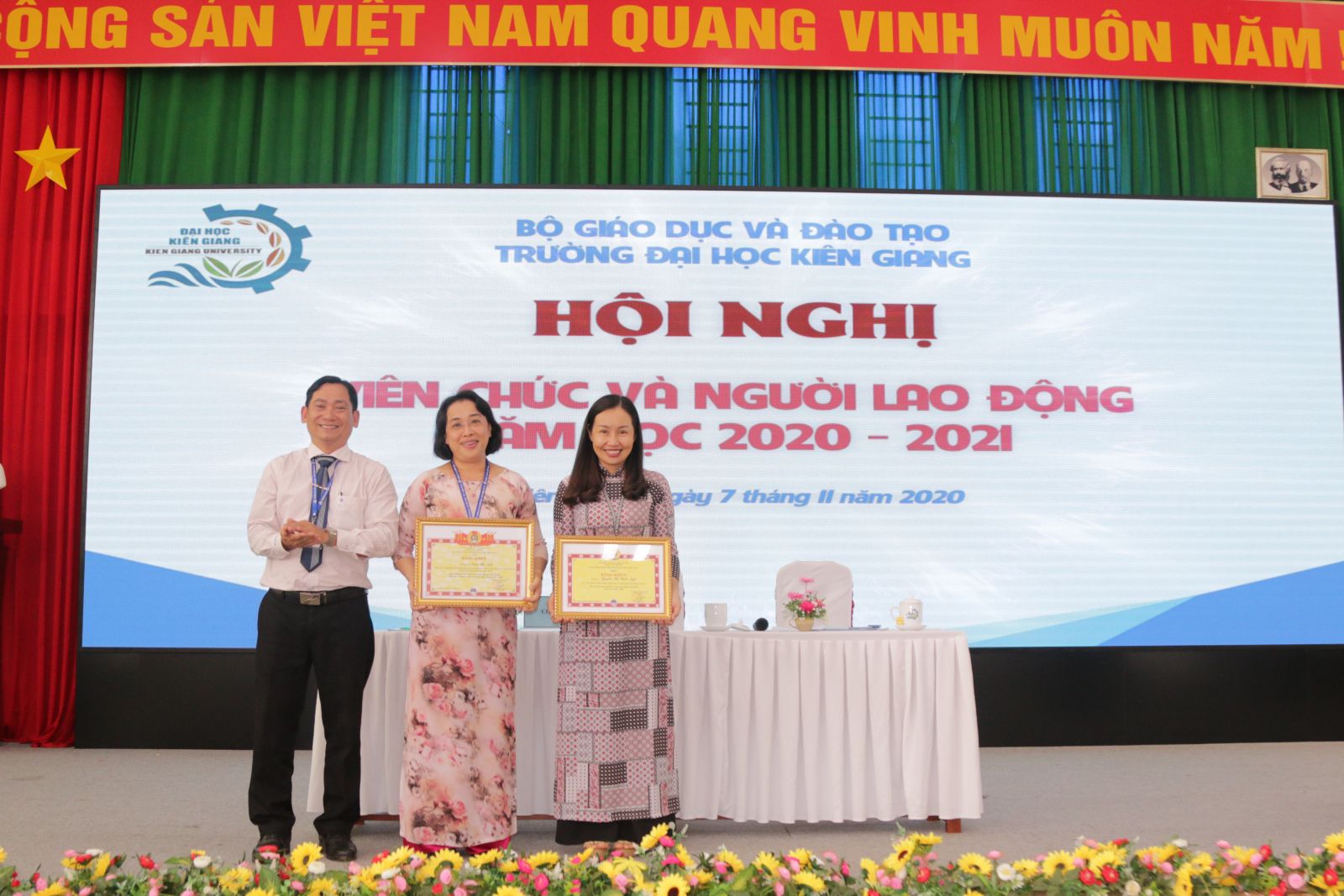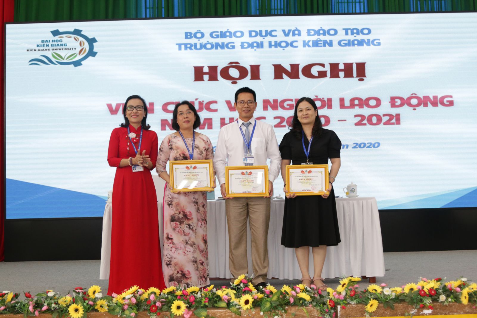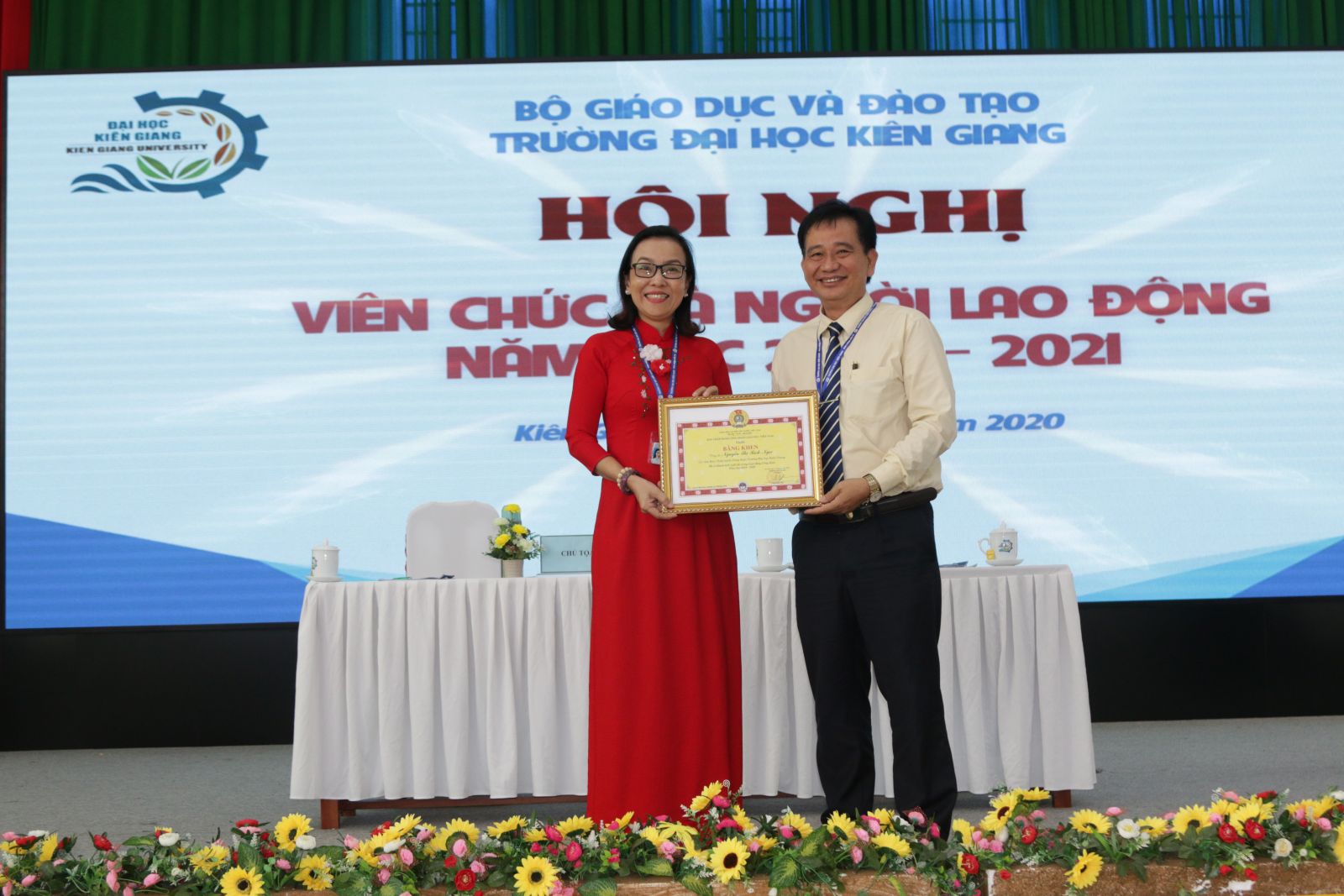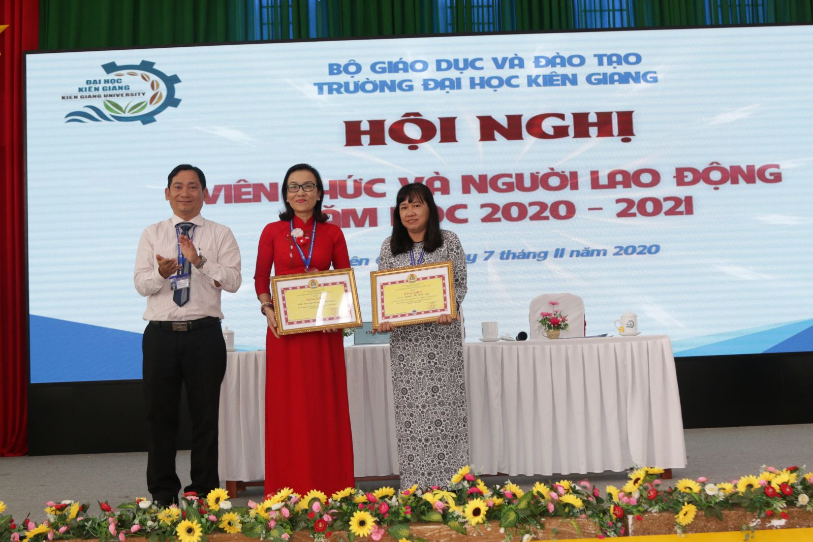 Đồng thời, tặng bằng khen của Ban Chấp hành Công đoàn Giáo dục Việt Nam cho tập thể Công đoàn Trường Đại học Kiên Giang và 2 cá nhân đã có thành tích xuất sắc trong hoạt động Công đoàn năm học 2019 - 2020; 1 cá nhân có thành tích xuất sắc trong triển khai, thực hiện các phong trào thi đua, các cuộc vận động giai đoạn 2015 – 2020; Ban Chấp hành Công đoàn cơ sở Trường Đại học Kiên Giang khen thưởng cho 3 tập thể và 48 cá nhân đã có thành tích xuất sắc trong năm học 2019 – 2020.