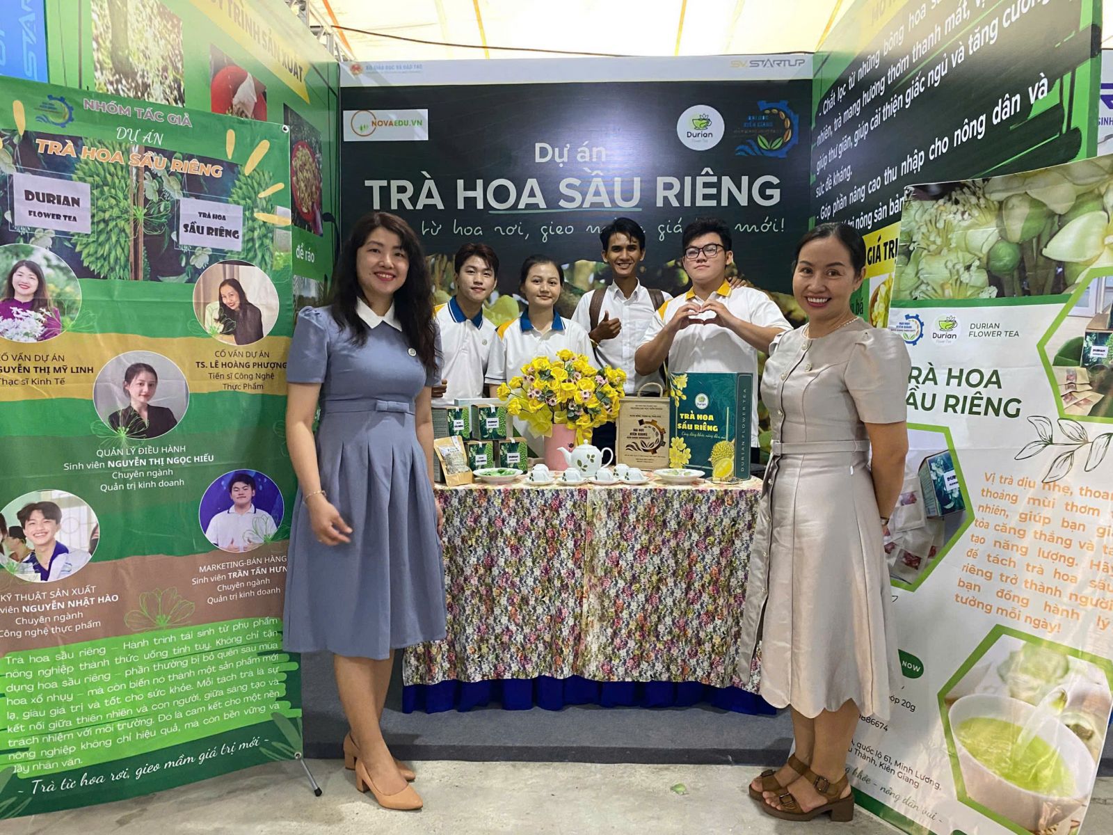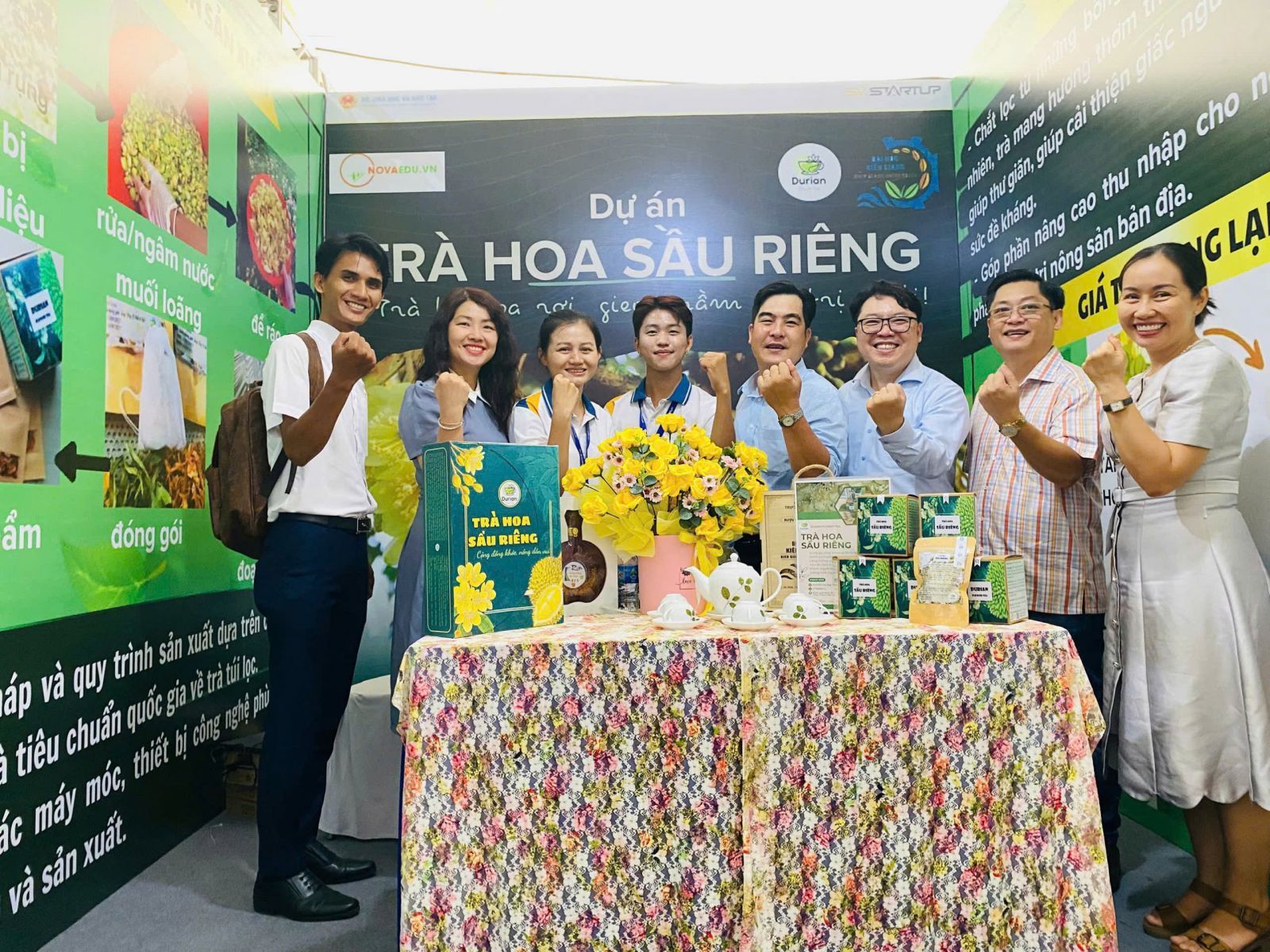 Gian hàng Dự án “Trà Hoa Sầu Riêng” của Trường Đại học Kiên Giang tại khu vực triển lãm.