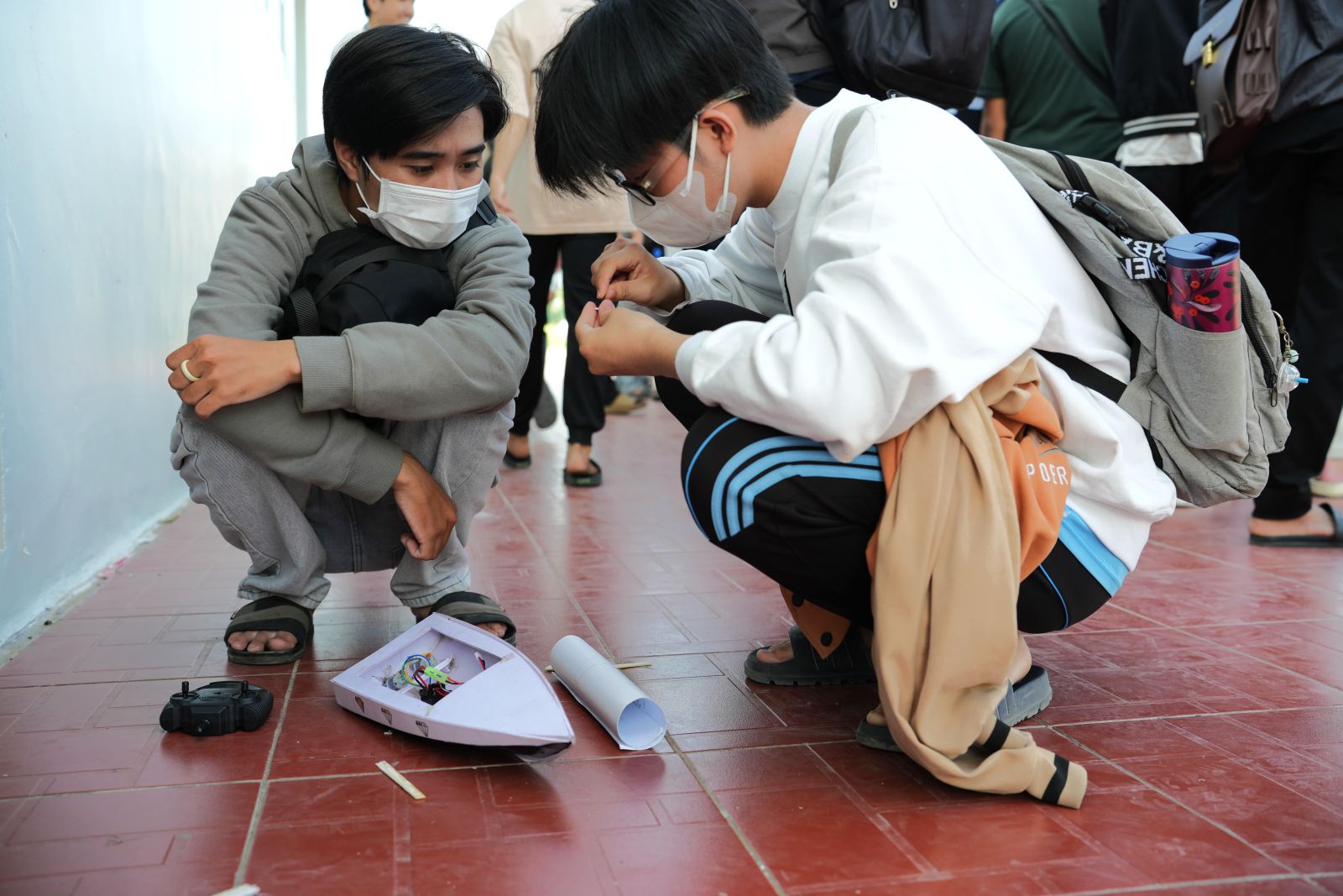 Sinh viên thảo luận, giải quyết sự cố thuyền tại cuộc thi