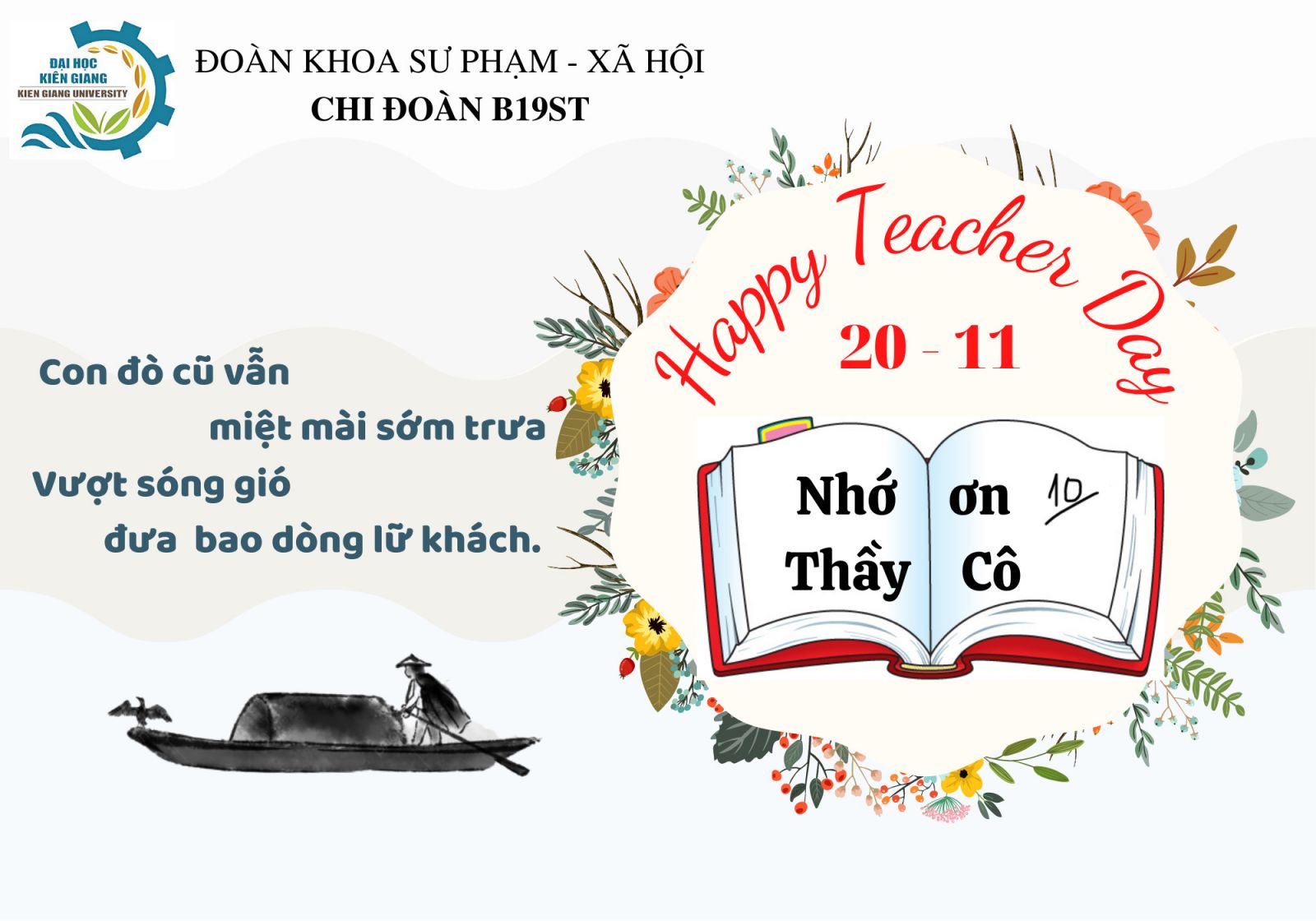 Thiệp chúc mừng ngày Nhà giáo Việt Nam 20/11 do các bạn sinh viên khoa Sư phạm và Xã hội nhân văn, Trường ĐH Kiên Giang thiết kế trên ứng dụng Canva (trang web thiết kế trực tuyến) dự thi
