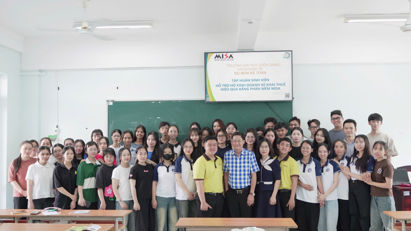 Nhằm trang bị kiến thức thực tiễn và nâng cao kỹ năng nghề nghiệp cho sinh viên khối ngành Kinh tế. Ngày 05/12/2025, Khoa Kinh tế – Trường Đại học Kiên Giang phối hợp cùng Công ty Cổ phần MISA tổ chức chương trình “Tập huấn sinh viên hỗ trợ hộ kinh doanh kê khai thuế hiệu quả bằng phần mềm MISA HKD”.