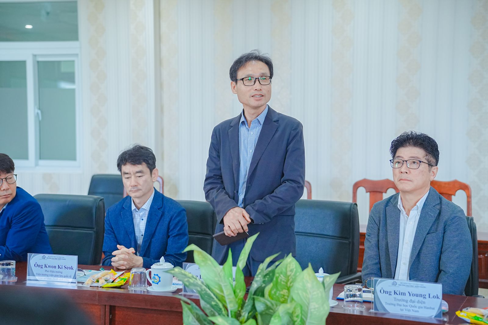 Tham dự buổi làm việc, về phía Trường Đại học Quốc gia Hanbat do ông Lim Joon Mook – Phó Hiệu trưởng phụ trách Hợp tác với Doanh nghiệp, Giáo sư Khoa Hội tụ Sáng tạo làm trưởng đoàn. Về phía Trường Đại học Kiên Giang có TS. Nguyễn Hữu Thọ – Chủ tịch Hội đồng trường; TS. Nguyễn Văn Thành – Hiệu trưởng Nhà trường; cùng đại diện các phòng, khoa, trung tâm trực thuộc nhà trường.