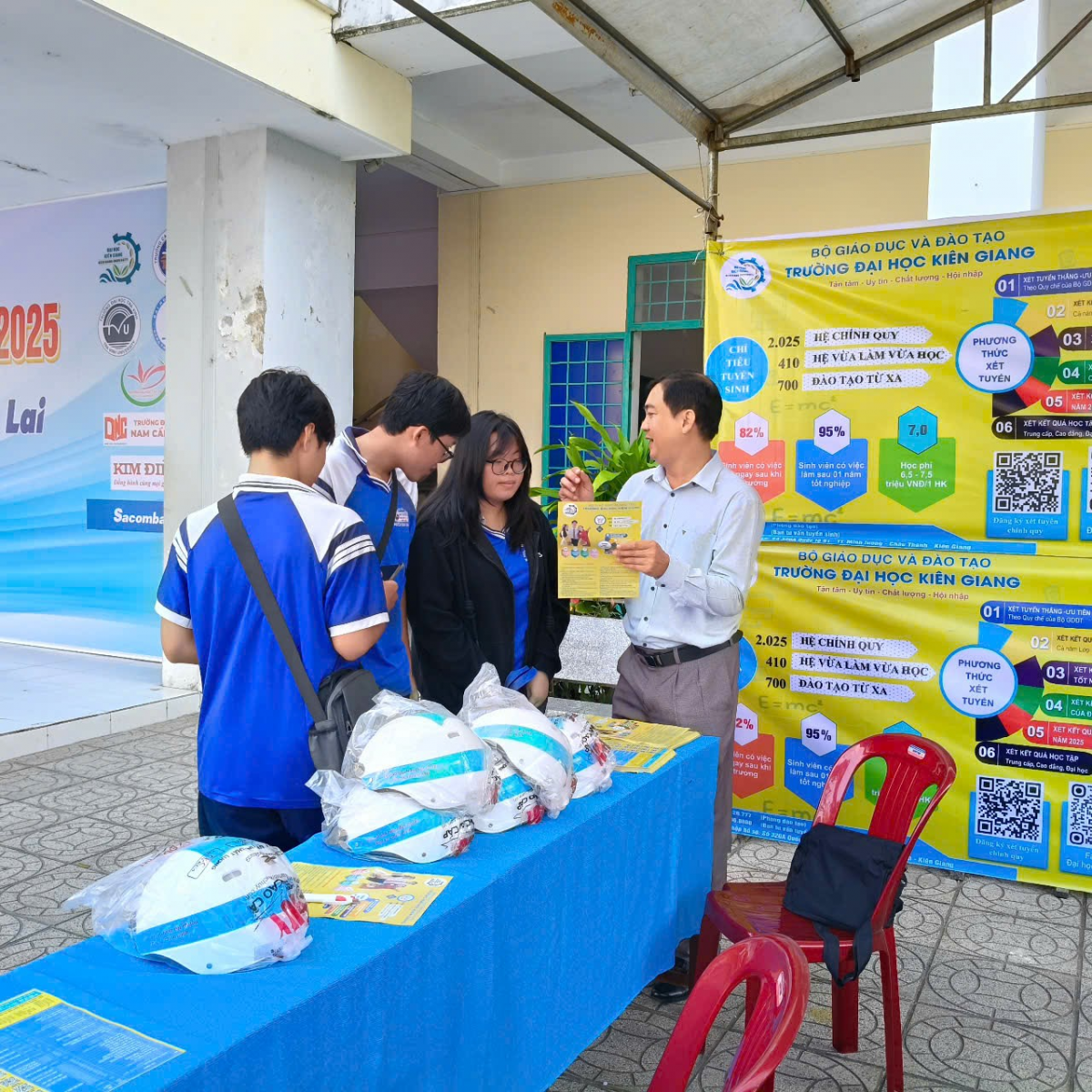 Trường Đại học Kiên Giang tham gia tư vấn trực tiếp, giới thiệu các ngành đào tạo thế mạnh như nông nghiệp công nghệ cao, kinh tế biển, du lịch – dịch vụ,… Nhà trường cũng chia sẻ thông tin về các chương trình hợp tác doanh nghiệp, giúp sinh viên có cơ hội thực tập và việc làm sau khi ra trường.