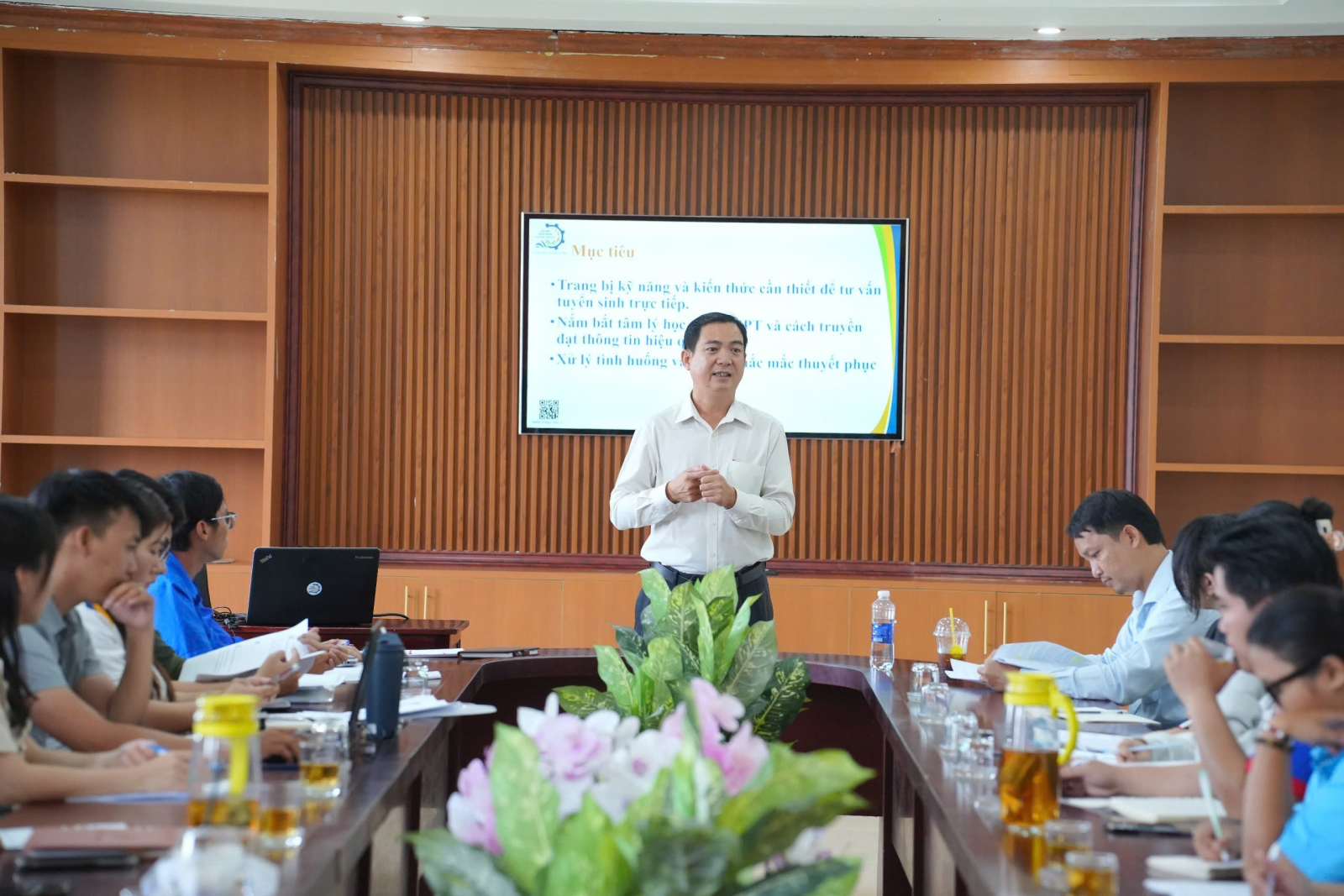 Phát biểu tại buổi tập huấn, ThS. Phan Hoàng Giẻo – Phó Trưởng Phòng Đào tạo nhấn mạnh: "Tư vấn tuyển sinh không chỉ đơn thuần là cung cấp thông tin mà còn là quá trình định hướng tương lai cho thí sinh. Vì vậy, đội ngũ tư vấn cần nắm vững thông tin về ngành học, chính sách hỗ trợ và truyền tải một cách rõ ràng, hiệu quả, giúp thí sinh đưa ra quyết định đúng đắn nhất."
