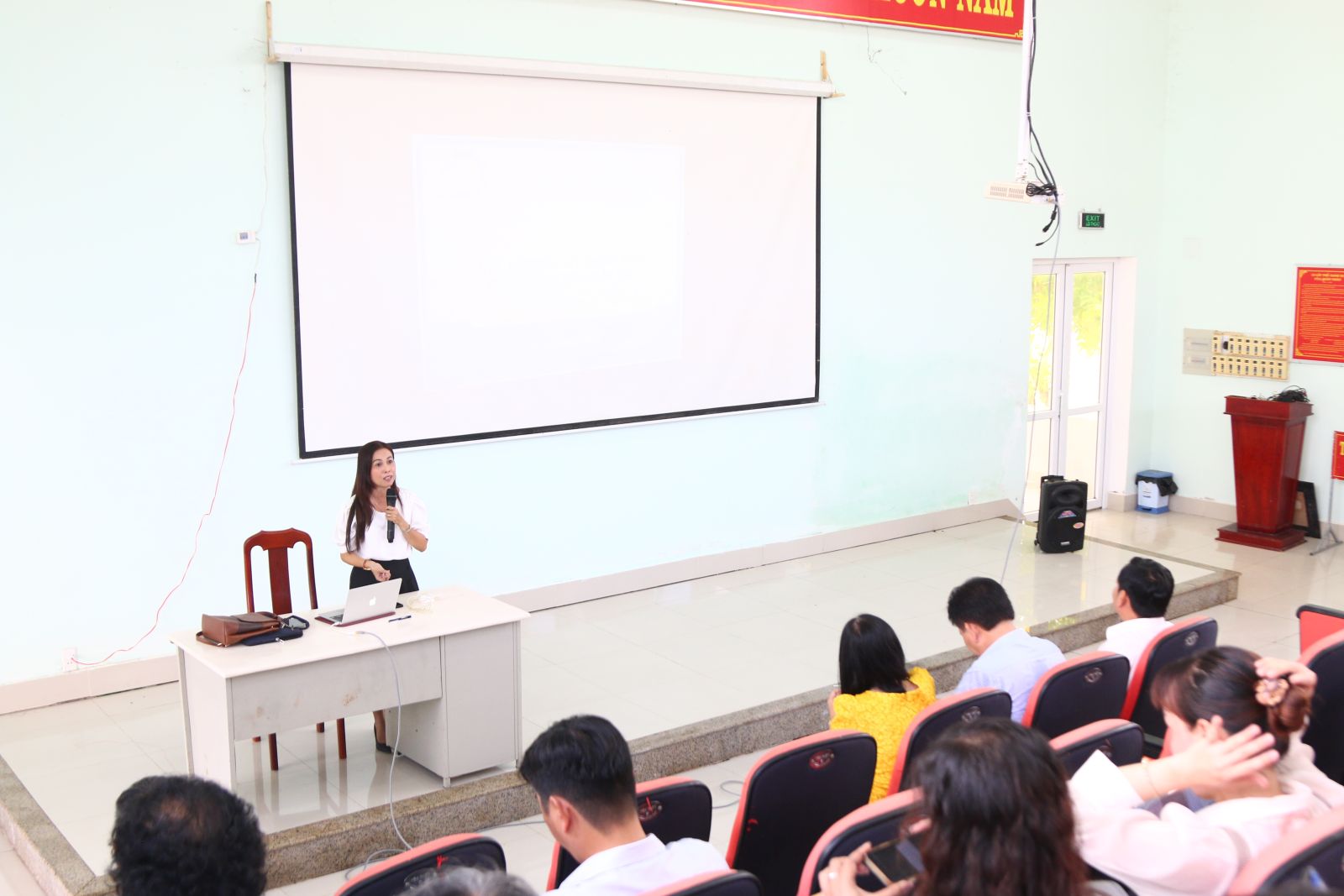 Buổi tập huấn do ThS. Lê Thị Kiều Diễm - Phó trưởng phụ trách Phòng Khảo thí và Đảm bảo chất lượng làm báo cáo viên, triển khai một số nội dung chuẩn bị phỏng vấn; phương pháp trả lời một số câu hỏi phỏng vấn theo từng nhóm đối tượng.