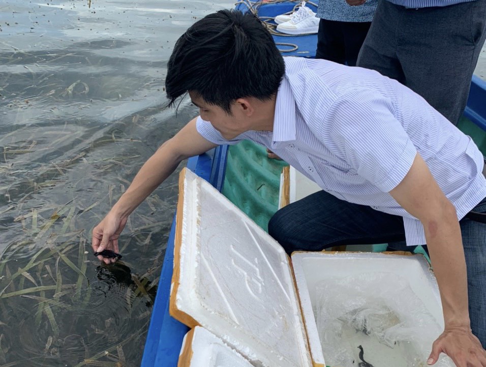 Ths. Phạm Minh Tứ - Trường Đại học Kiên Giang - thả 300 con cá ngựa về Khu bảo tồn biển Phú Quốc