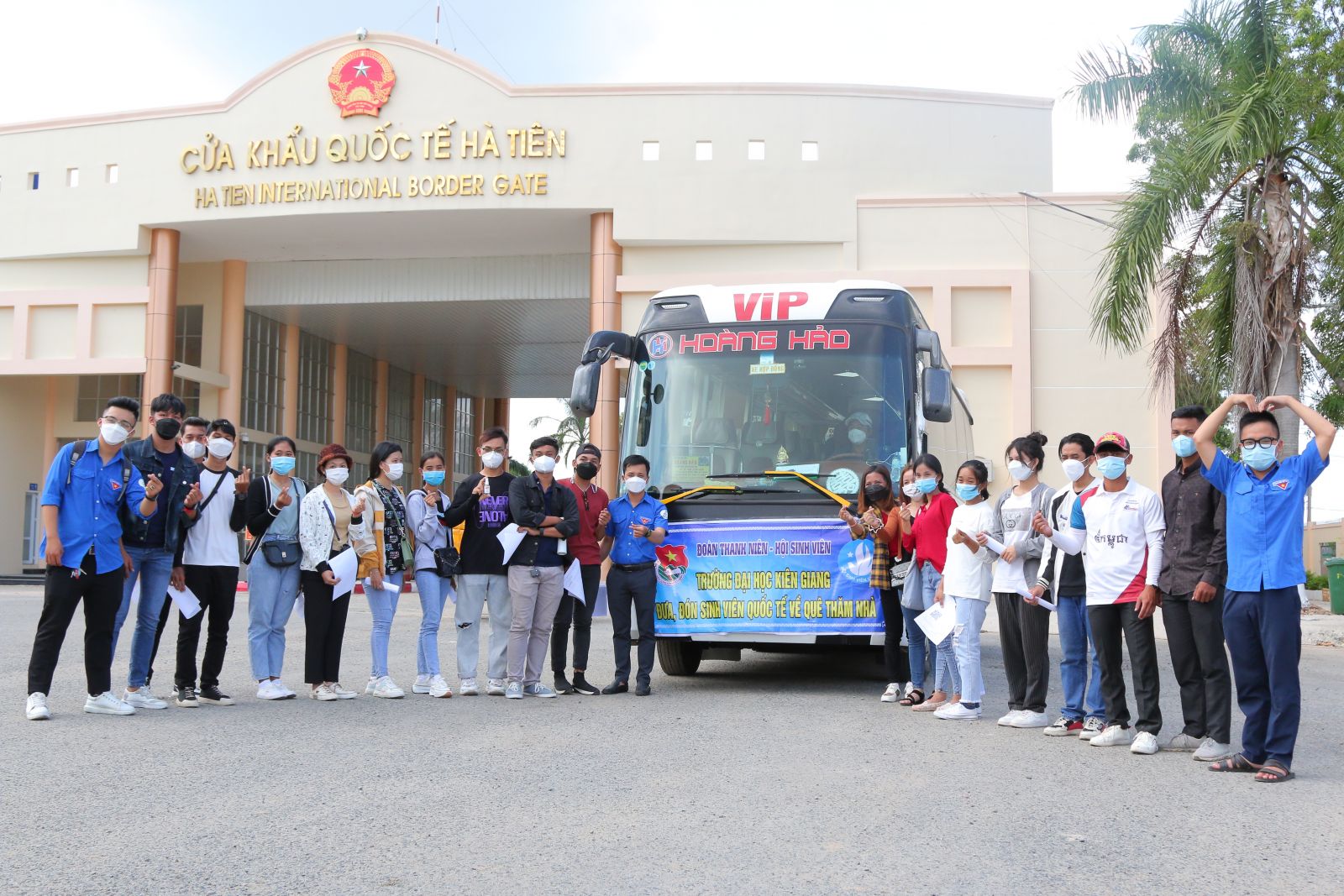Trường Đại học Kiên Giang tổ chức xe đón sinh viên Campuchia ở Cửa khẩu quốc tế Hà Tiên sau thời gian nghỉ Tết Nguyên đán