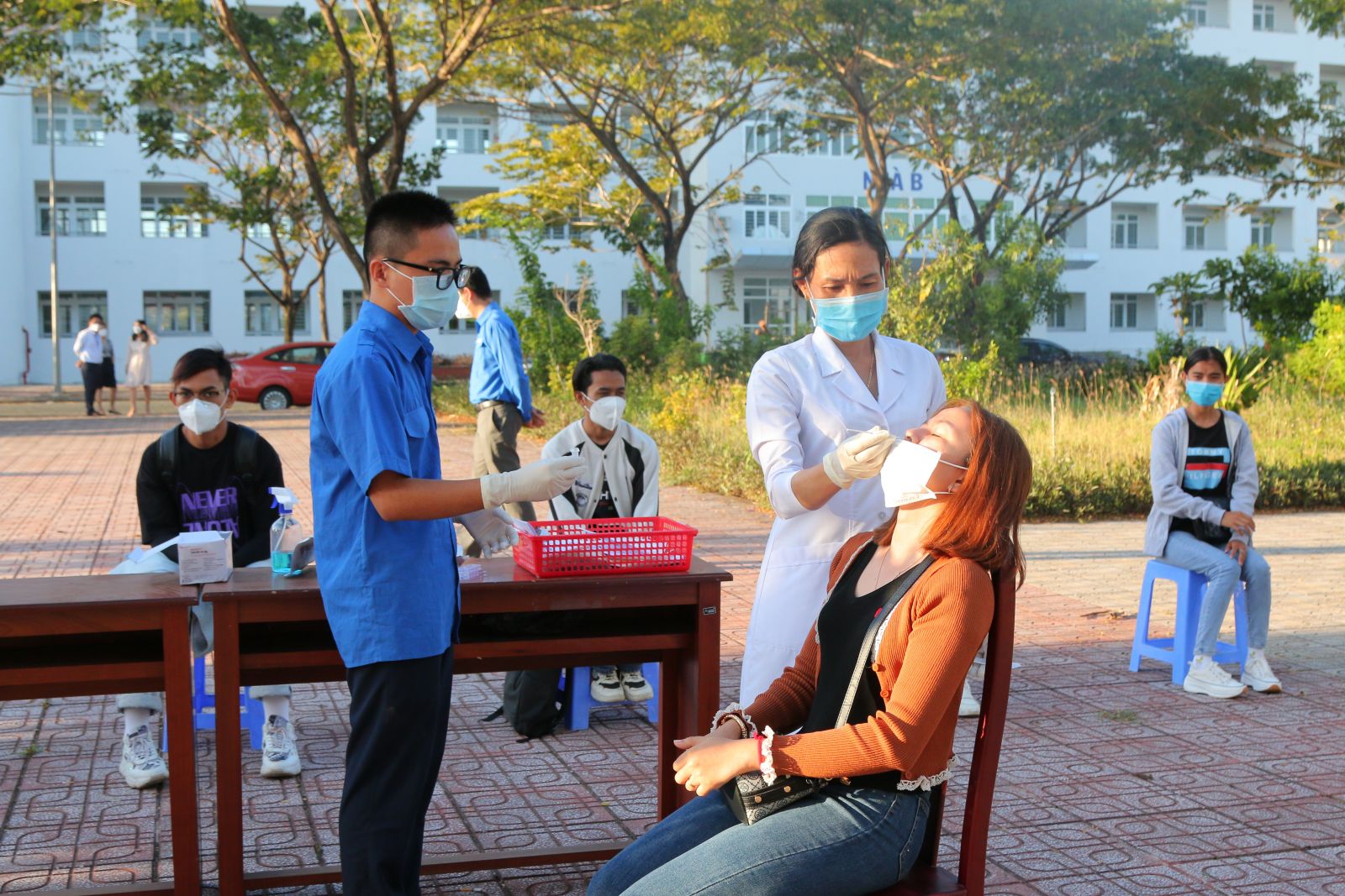 Để đảm bảo công tác phòng chống dịch Covid-19, sinh viên được đón về Trường thực hiện quy trình cách ly theo quy định của cơ quan y tế. Theo đó, Nhà trường tổ chức test nhanh kháng nguyên Covid-19 trước khi đưa các em về ký túc xá cách ly 3 ngày, Trung tâm Y tế huyện Châu Thành sẽ lấy mẫu PCR trước khi cho các em vào lớp học tập trực tiếp. Nếu các em sinh viên nhiễm Covid-19 sẽ được cách ly, điều trị theo quy định và được giảng viên hướng dẫn, gửi tài liệu về học tập để theo kịp tiến độ.