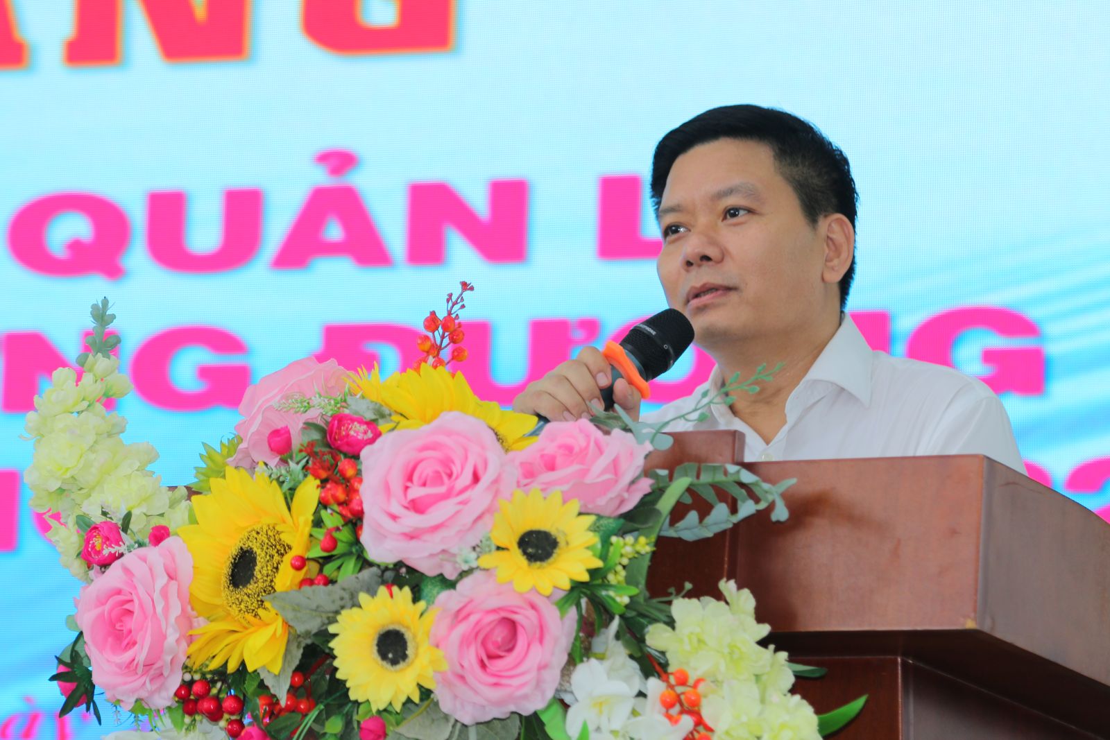 TS. Vũ Quảng - Bí thư Đảng ủy, Quyền Hiệu trưởng Trường Cán bộ Quản lý Giáo dục TP. Hồ Chí Minh phát biểu tại lễ Khai giảng lớp Bồi dưỡng cán bộ quản lý phòng, khoa và tương đương năm 2022