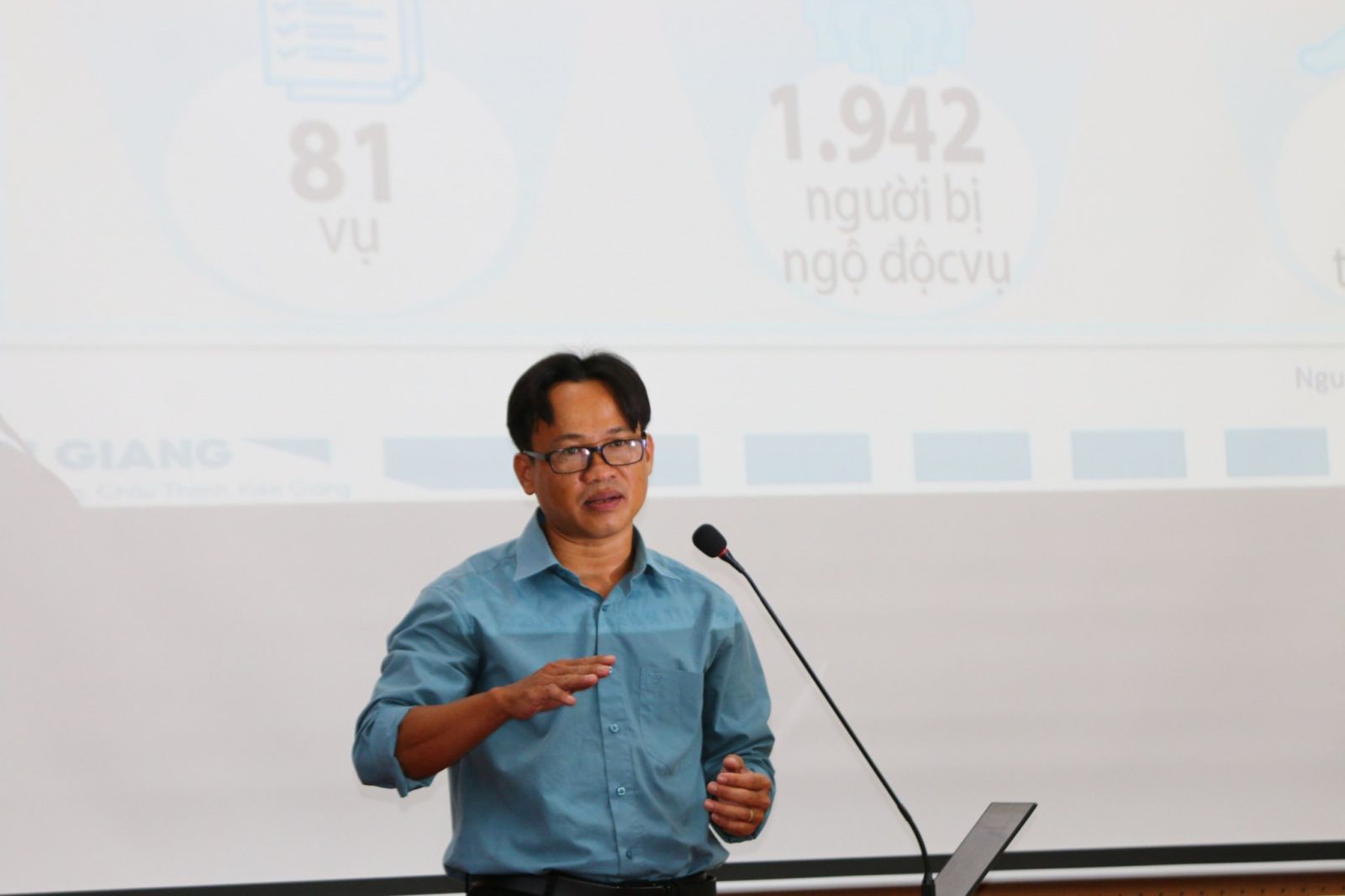 ThS. Hồ Quốc Việt – Giảng viên Khoa Khoa học Thực phẩm và Sức khoẻ, Trường Đại học Kiên Giang hướng dẫn tập huấn.