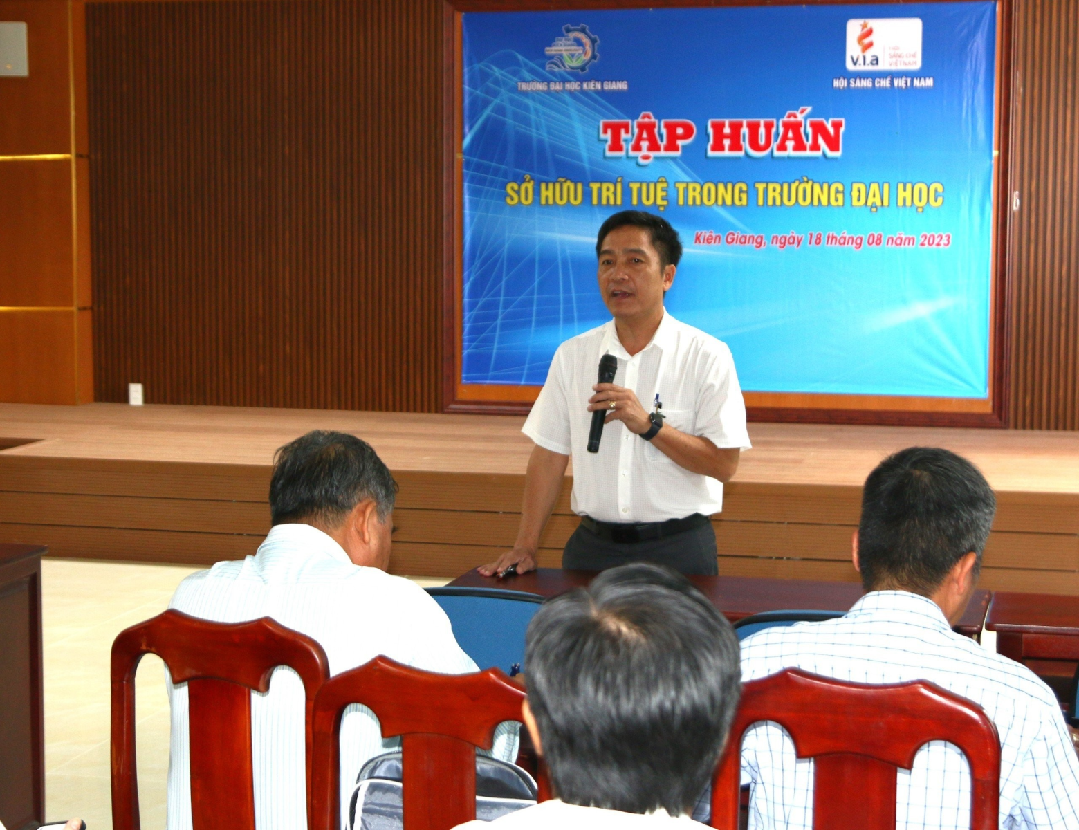 TS. Nguyễn Trung Cang – Phó Hiệu trưởng Trường Đại học Kiên Giang cho biết buổi tập huấn nhằm nâng cao kiến thức, chuyên môn, nghiệp vụ về sở hữu trí tuệ cho giảng viên, chuyên viên trong và ngoài Trường Đại học Kiên Giang.