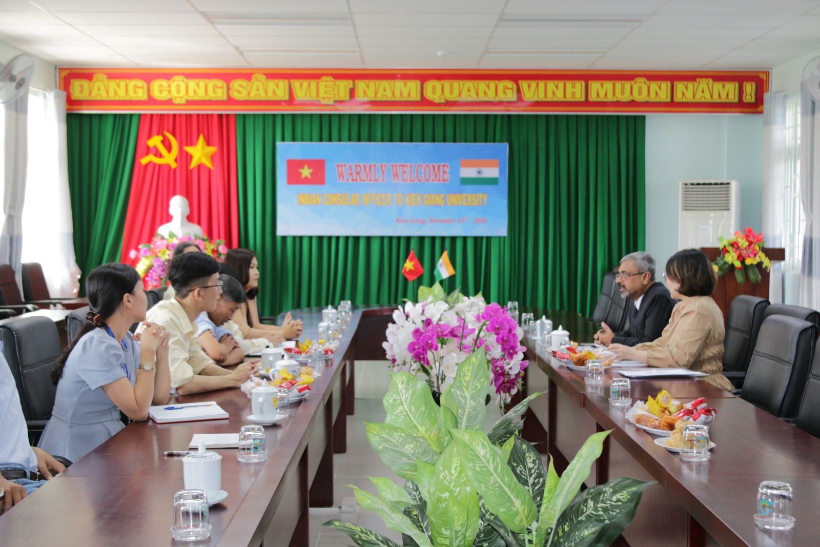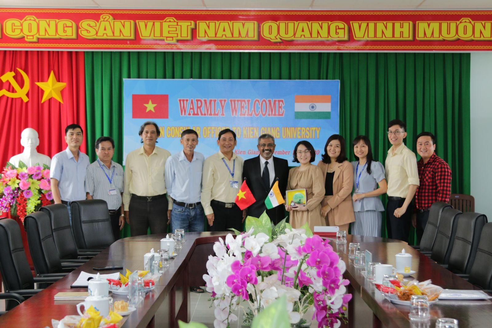 Sáng ngày 13/11, Đoàn làm việc của Tổng Lãnh sự quán Ấn Độ tại Thành phố Hồ Chí Minh do ông R.O. Sunil Babu làm trường đoàn đã đến thăm và làm việc với Trường Đại học Kiên Giang. Tiếp đoàn có TS. Nguyễn Văn Thành – Phó Hiệu trưởng Trường Đại học Kiên Giang, cùng lãnh đạo các phòng, khoa chuyên môn.