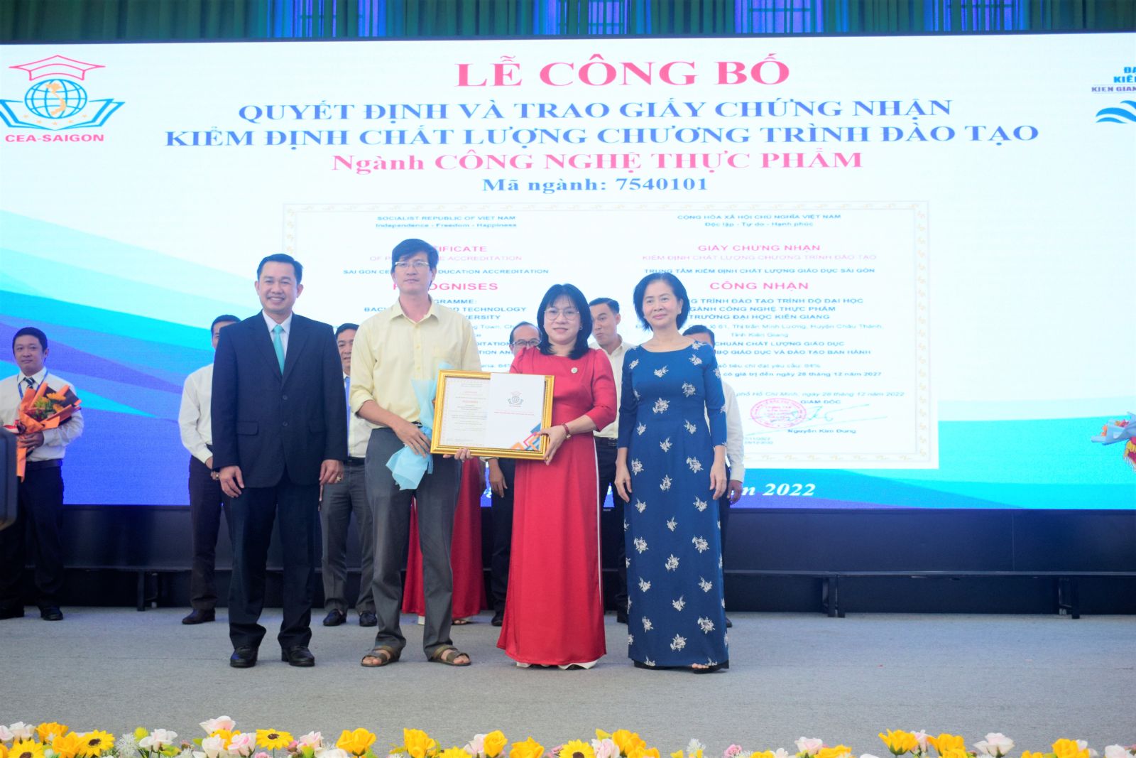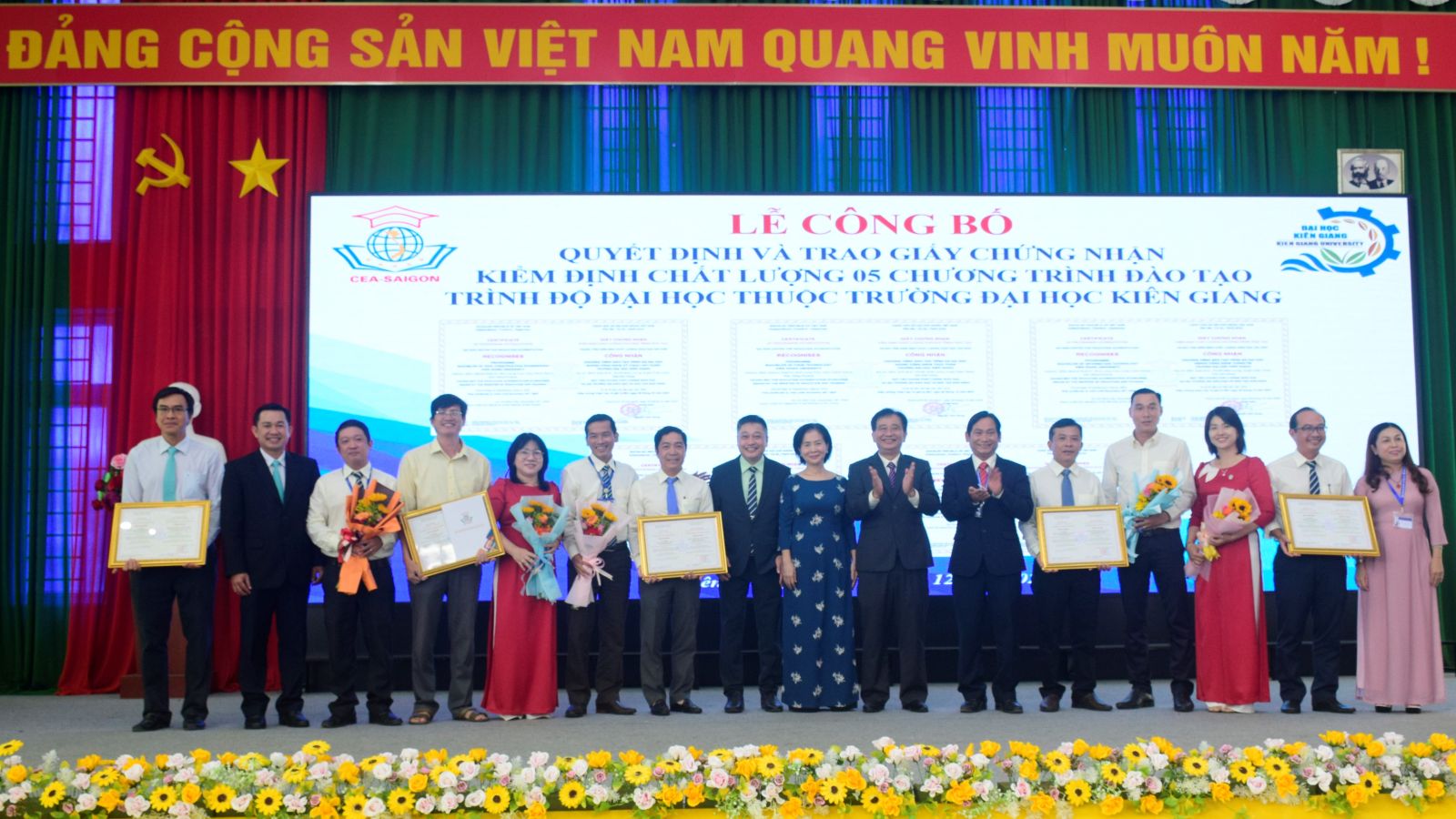 Ngày 29/12, Trường Đại học Kiên Giang tổ chức Lễ công bố quyết định và trao chứng nhận đạt chuẩn kiểm định chất lượng giáo dục 5 chương trình đào tạo. Tham dự có đại diện Trung tâm Kiểm định Chất lượng Giáo dục Sài Gòn (CEA-SAIGON); đại diện các doanh nghiệp; Đảng ủy, Ban Giám hiệu cùng hơn 300 viên chức, giảng viên, sinh viên Trường Đại học Kiên Giang.