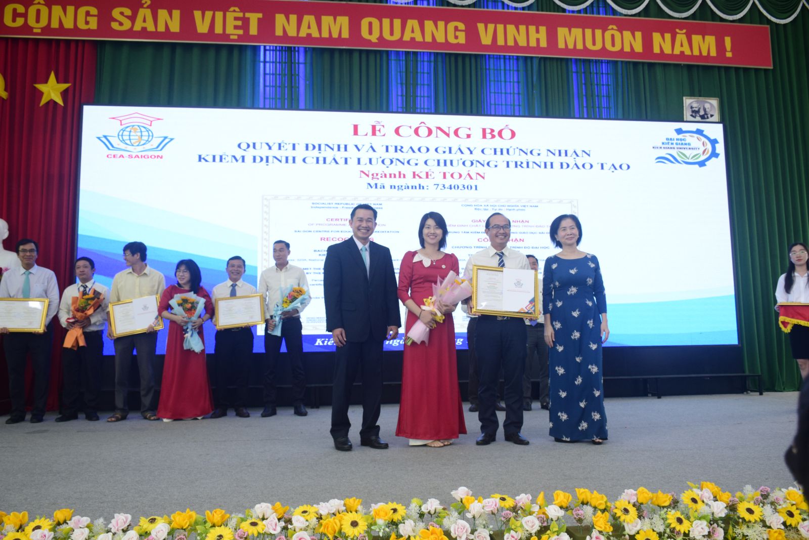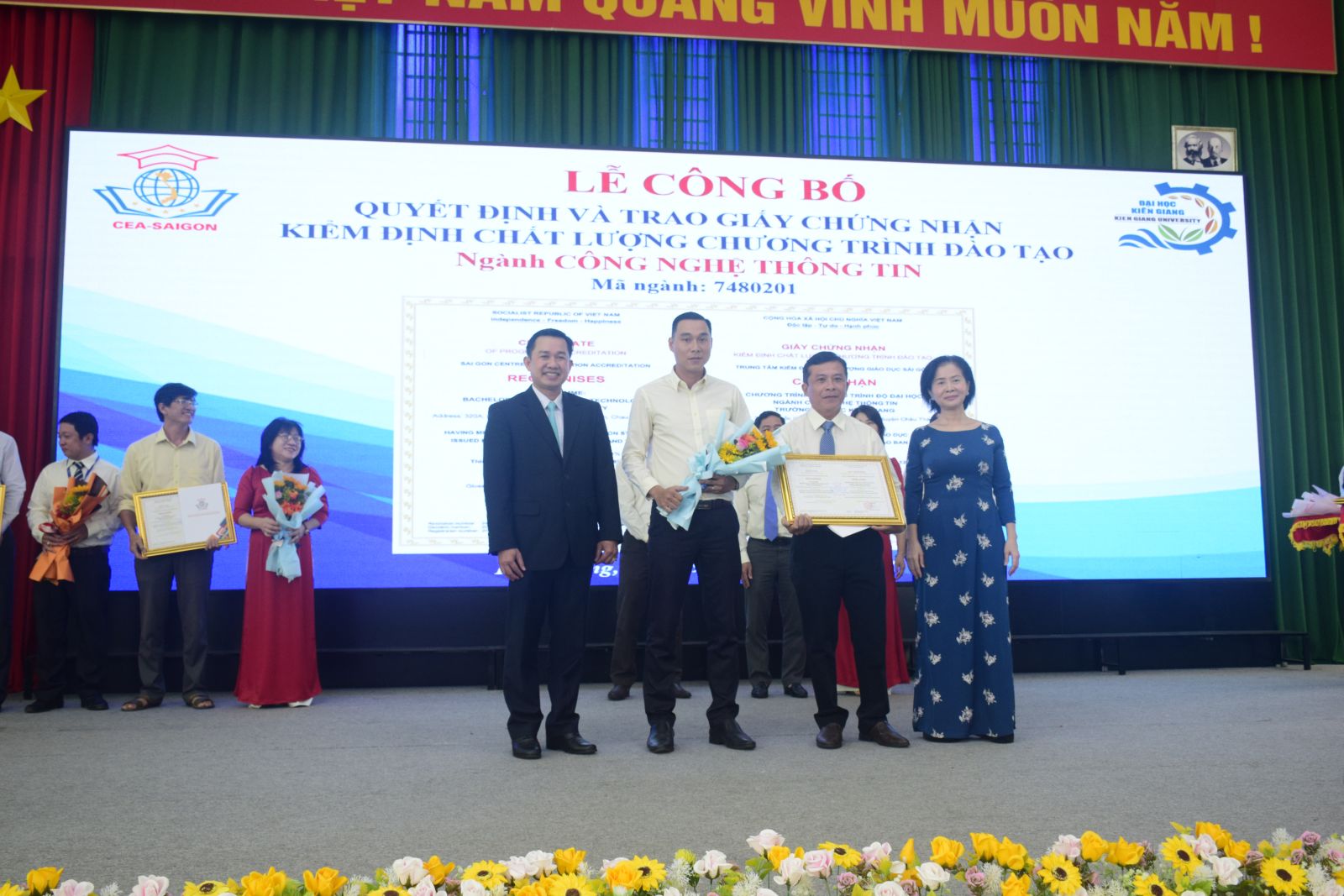 Ban Giám hiệu Trường Đại học Kiên Giang và đại diện Trung tâm Kiểm định Chất lượng Giáo dục Sài Gòn chúc mừng lãnh đạo các khoa