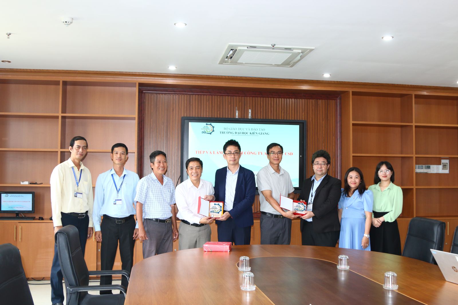Đoàn làm việc của Công ty Aureole CSD do ông Miura Shuhei – Chủ tịch Hội đồng thành viên làm trưởng đoàn cùng đi với các thành viên. Đón về tiếp đoàn có TS. Nguyễn Trung Cang – Phó Hiệu trưởng Trường Đại học Kiên Giang, lãnh đạo Khoa Kỹ thuật – Công nghệ, Trung tâm Thông tin - thư viện và Phòng Công tác Sinh viên và Kết nối cộng đồng.