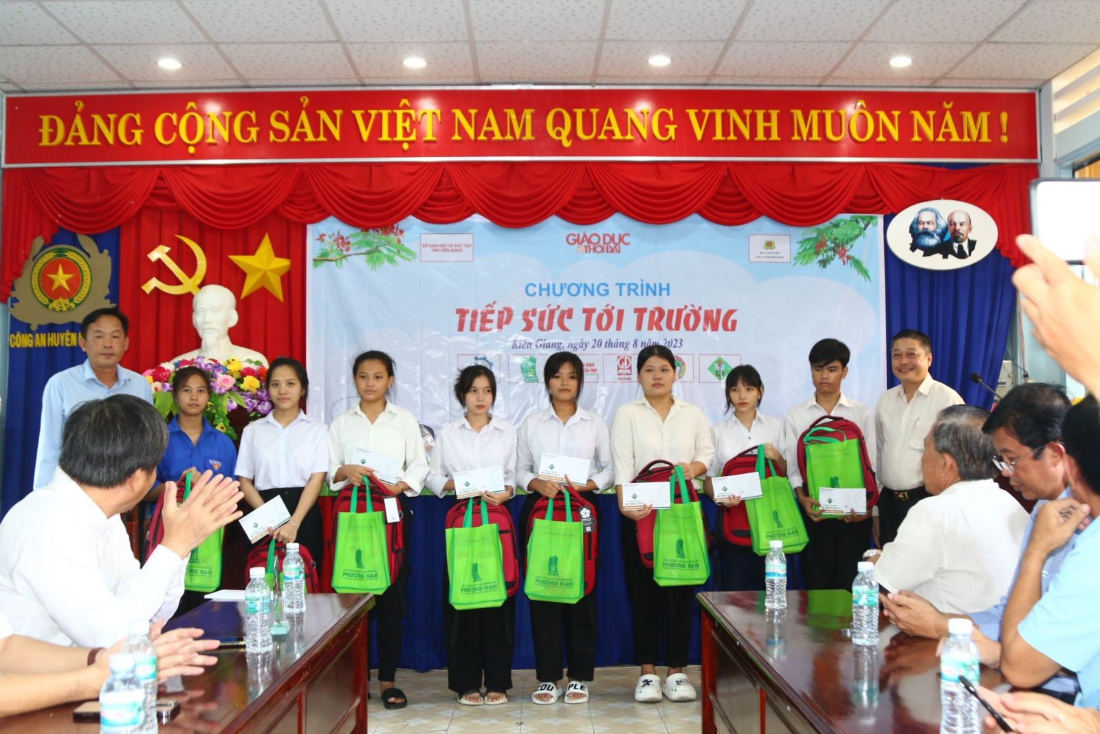 Chương trình "Tiếp sức đến trường" trao quà và học bổng cho 300 học sinh tiêu biểu vượt khó tại 3 huyện Kiên Hải, Gò Quao và Giang Thành do Báo Giáo dục và Thời đại phối hợp với Sở Giáo dục và Đào tạo tỉnh Kiên Giang tổ chức.