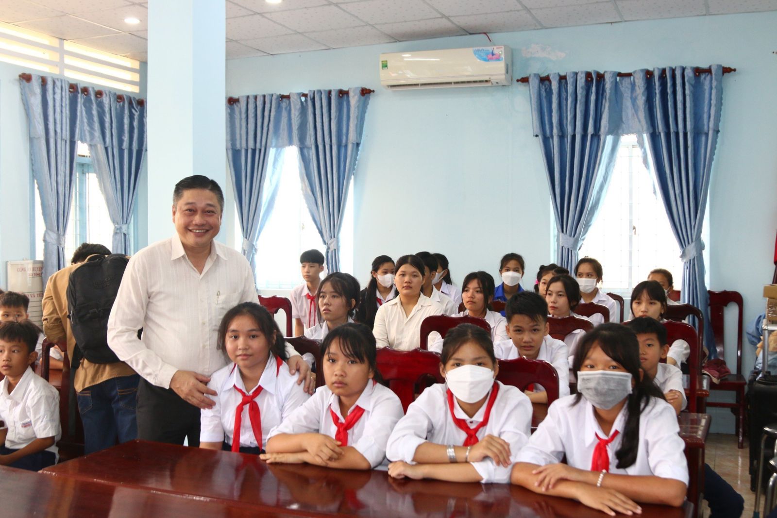 TS. Nguyễn Hữu Thọ - Phó Hiệu trưởng Trường Đại học Kiên Giang trao học bổng tại chương trình “Tiếp sức đến trường”