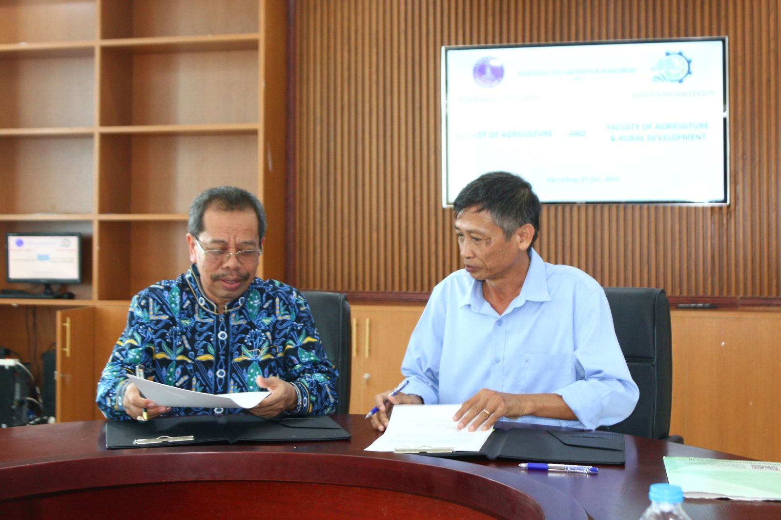 TS. Dương Văn Nhã – Trưởng Khoa Nông nghiệp và Phát triển Nông thôn, Trường Đại học Kiên Giang và Dr.Ir. Zulheri Noer, MP – Trưởng Khoa Nông nghiệp, Giám đốc nghiên cứu, Trường Đại học Medan Area, Indonesia ký kết thỏa thuận hợp tác
